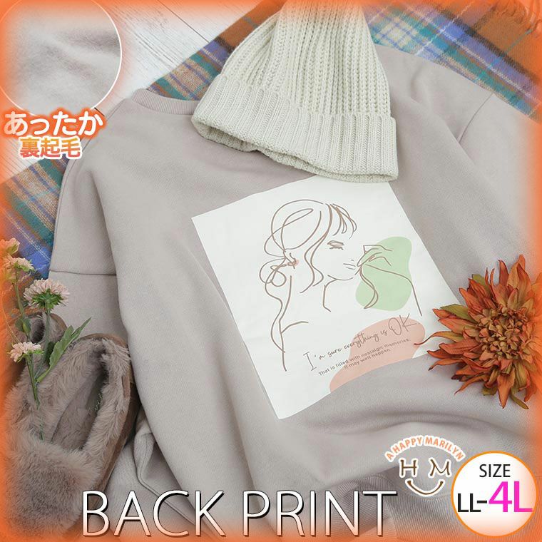 ゆったり可愛いシルエット。後ろ姿もかわいいバックプリントトレーナー