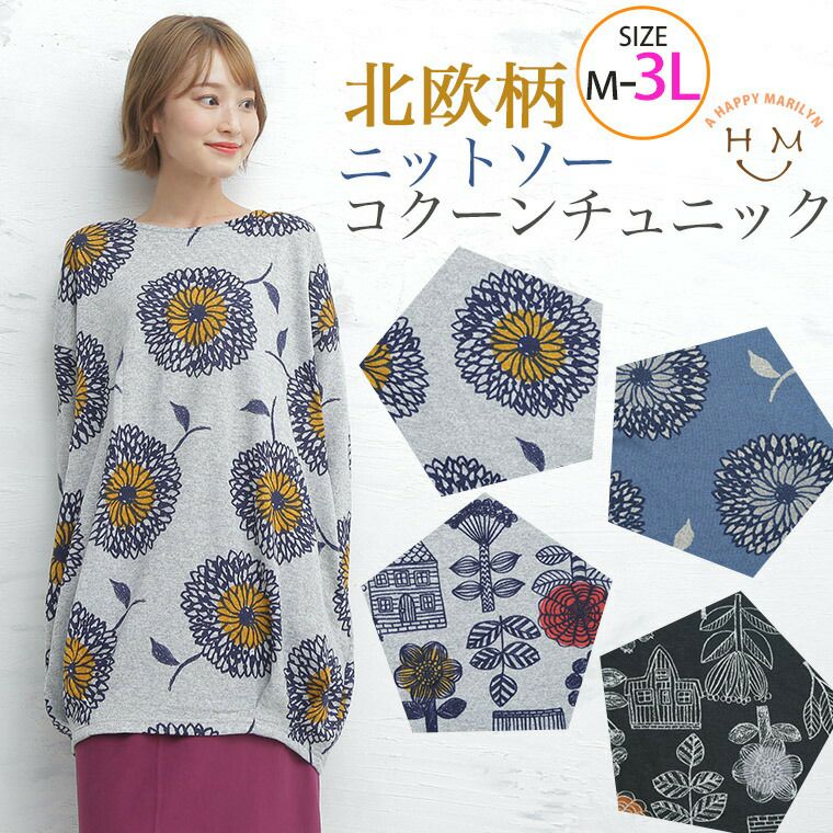 選べる北欧柄4カラー!ニットソーコクーンチュニック