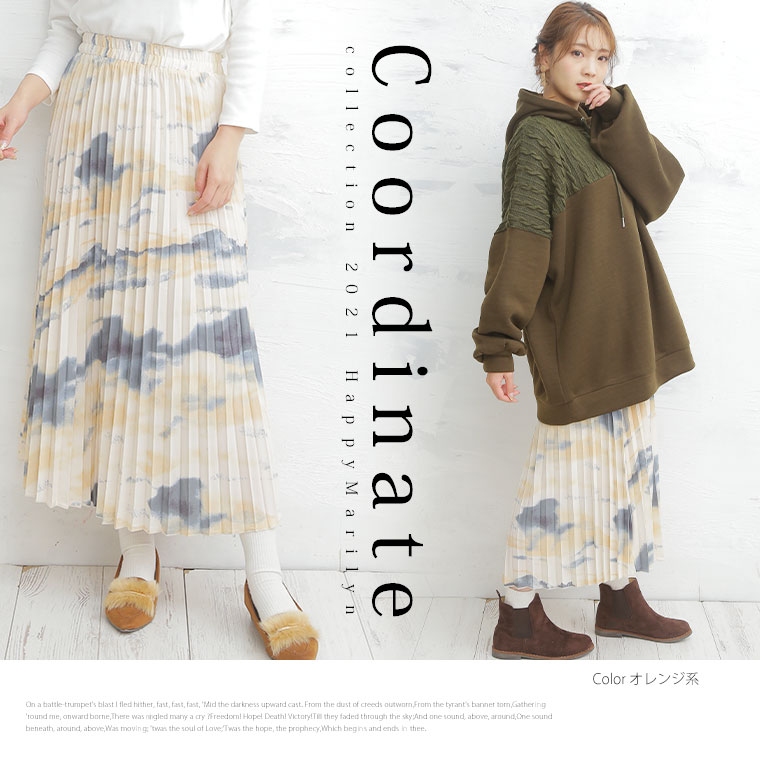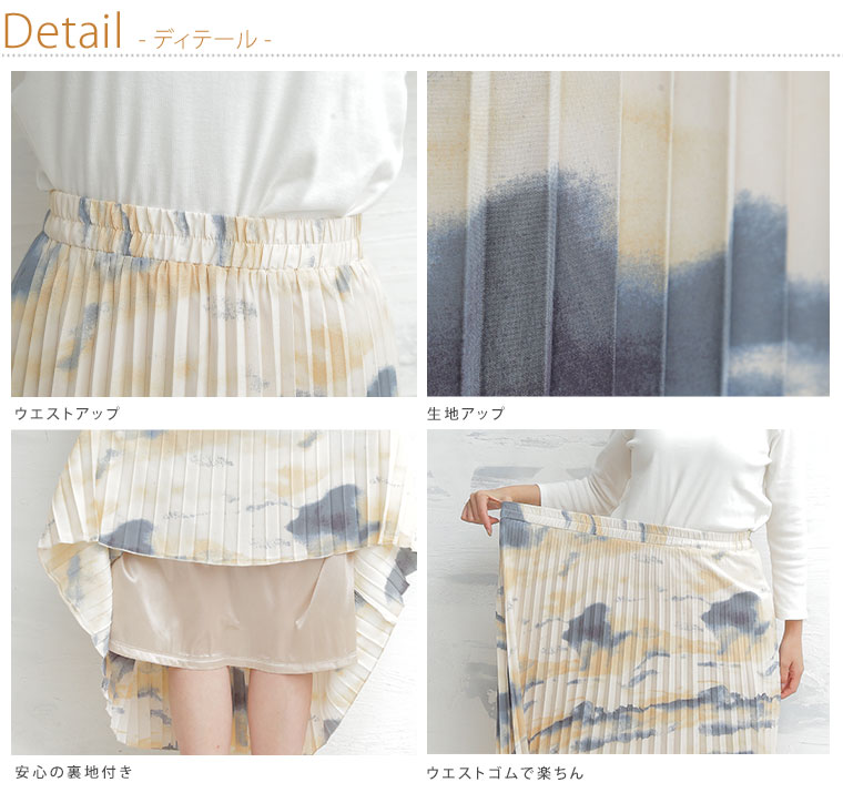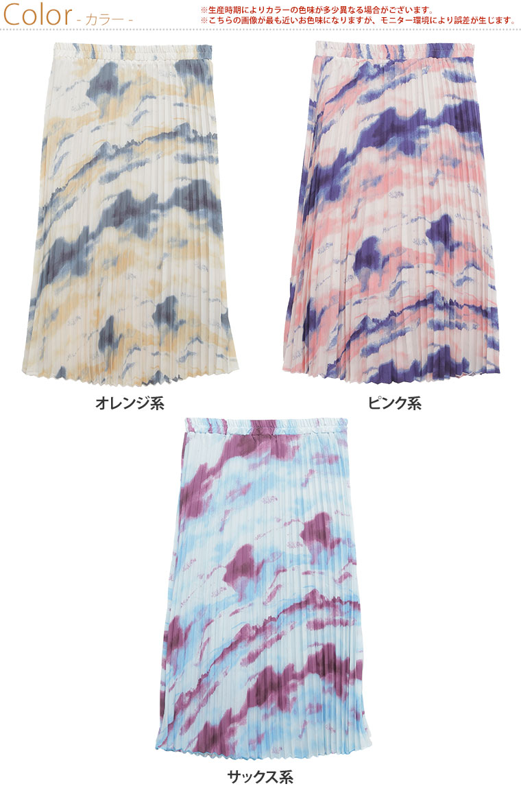 プリーツがゆれる水彩柄で周りと差をつける プリントスカート