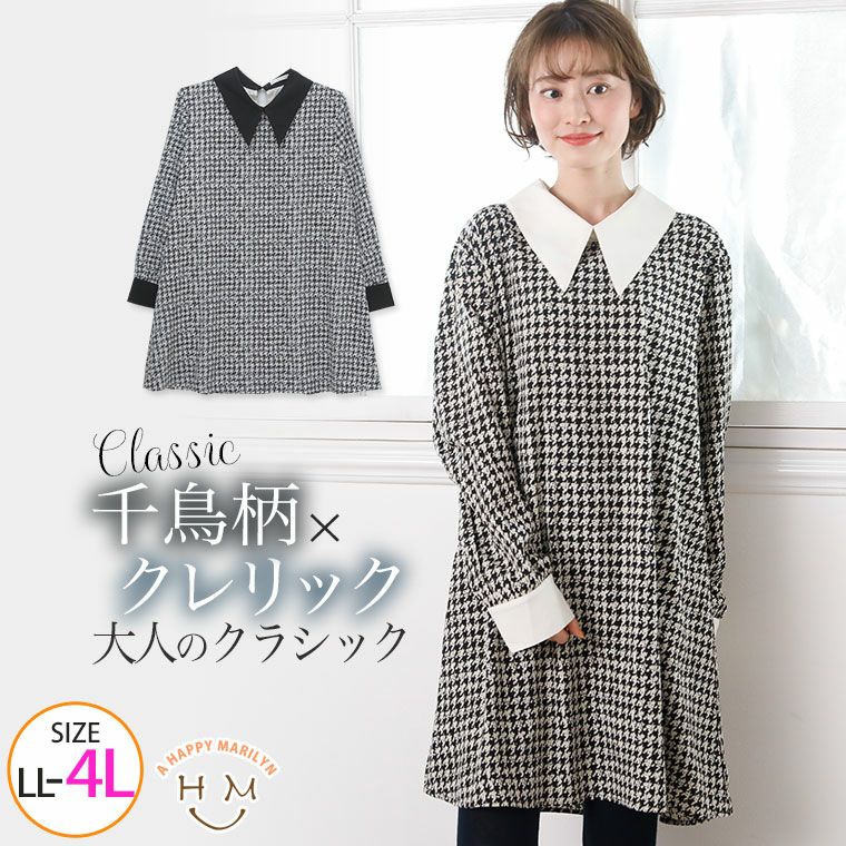 上品レトロな千鳥柄クレリックワンピース