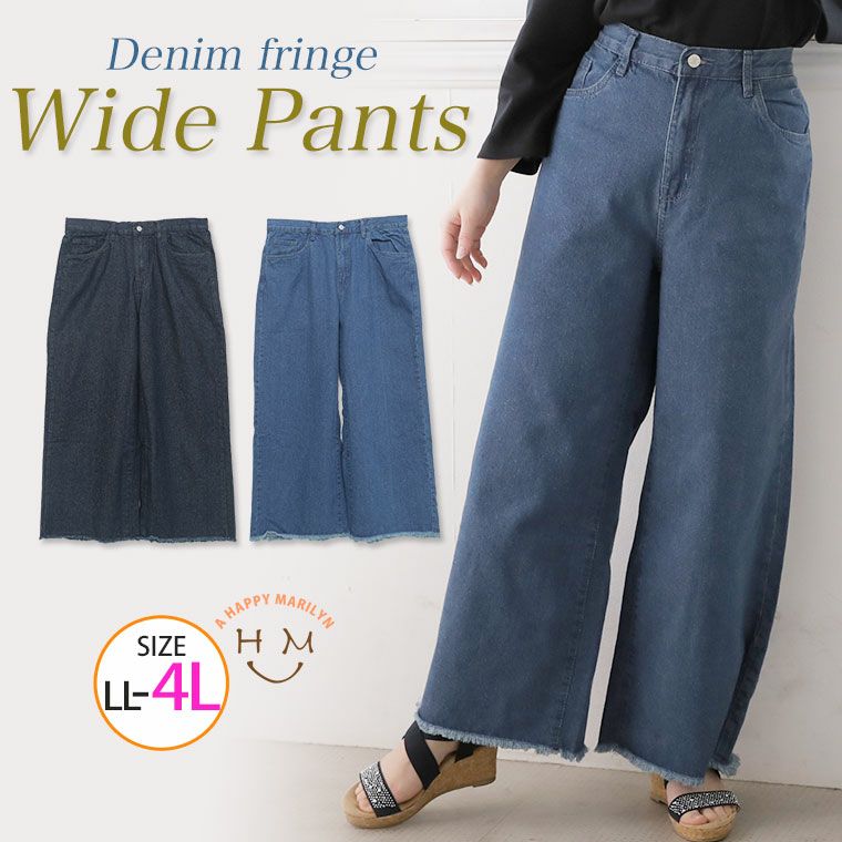 裾フリンジがお洒落!デニムワイドパンツ