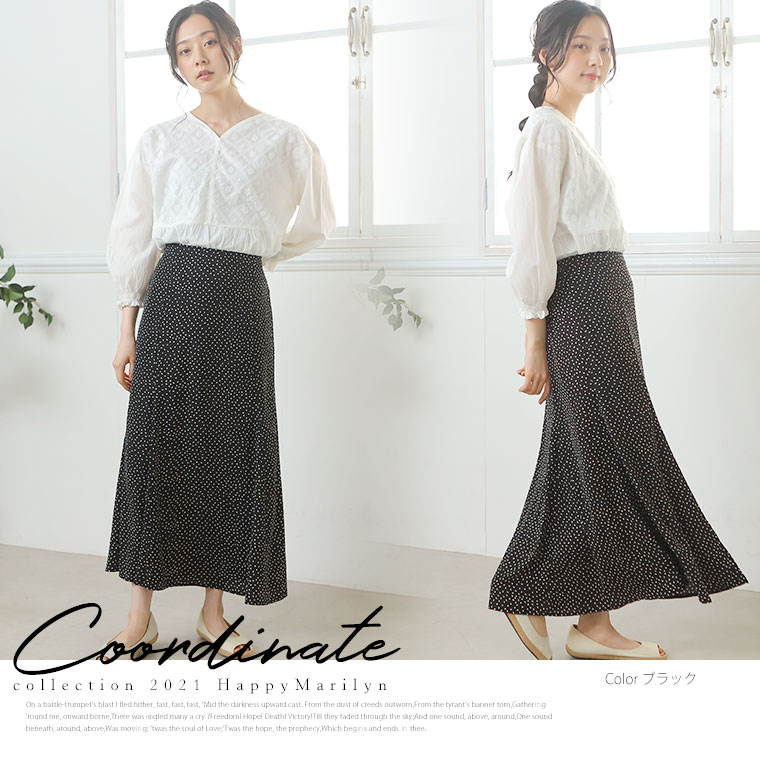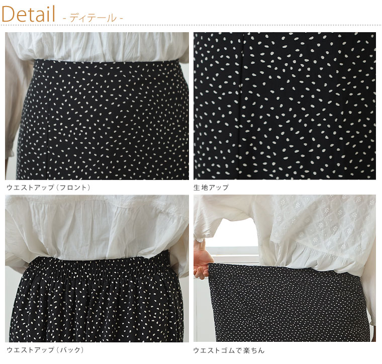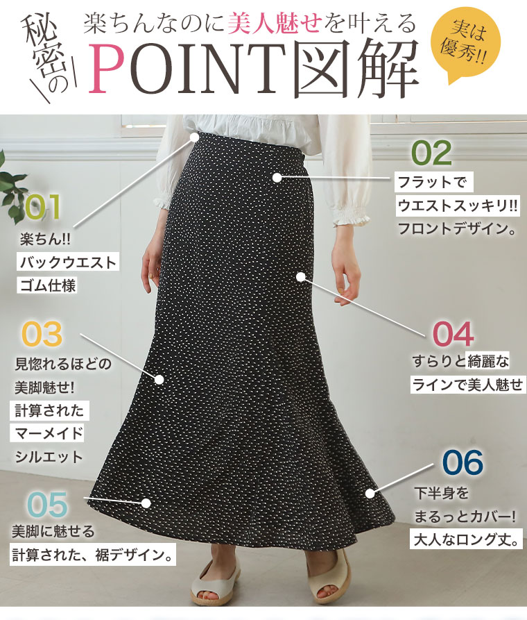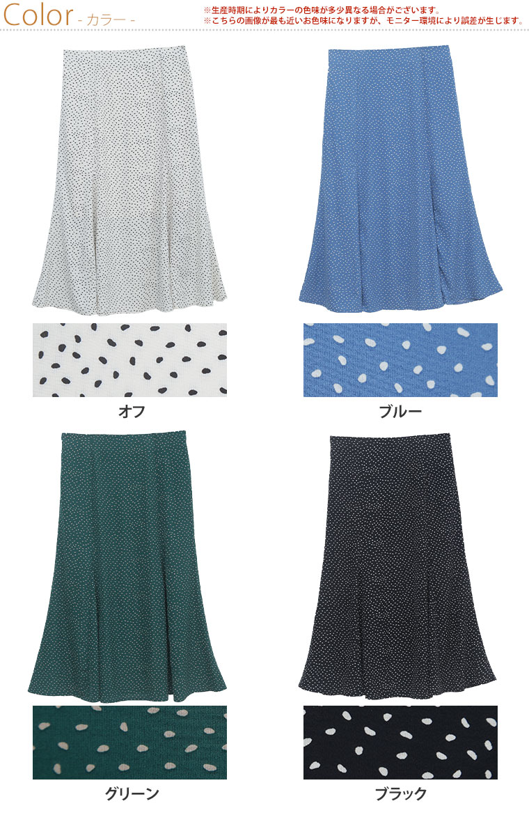 4. 大きいサイズ ジョーゼット ドット柄 プリント 88丈 マーメイドスカート