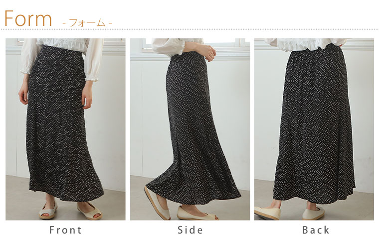 3. 大きいサイズ ジョーゼット ドット柄 プリント 88丈 マーメイドスカート
