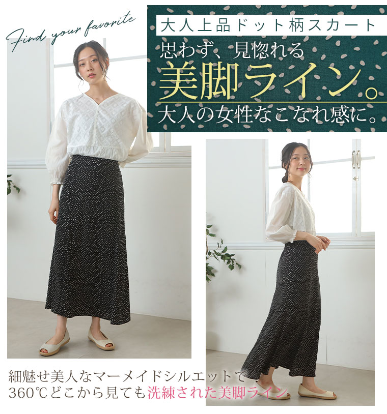 思わず見惚れる 大人上品ドット柄Skirt