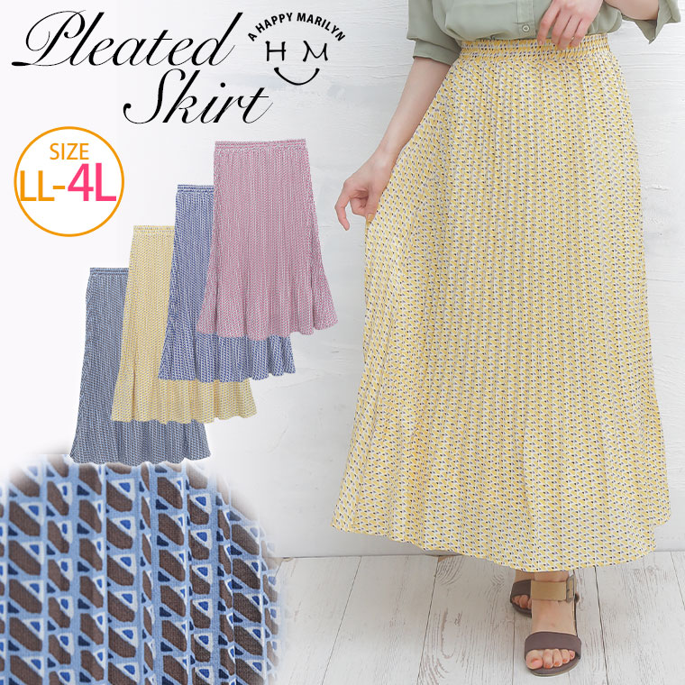 大人の消しプリーツ 洗練レトロ柄ロングスカート