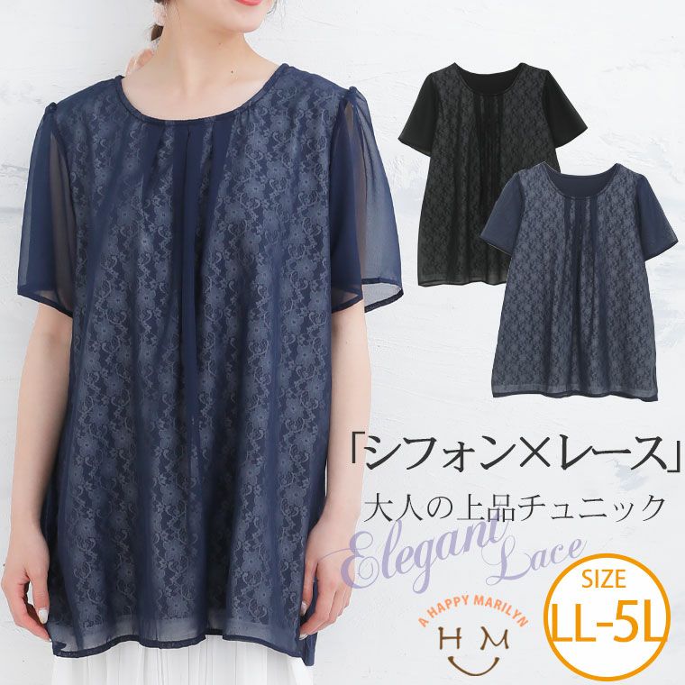 シフォン×レースの上品チュニック