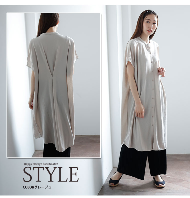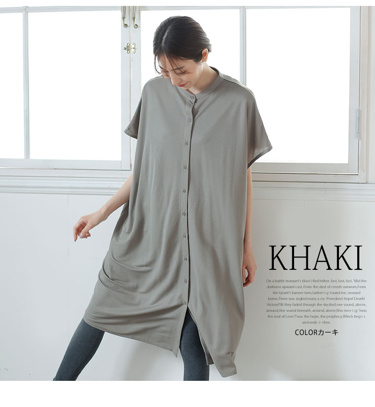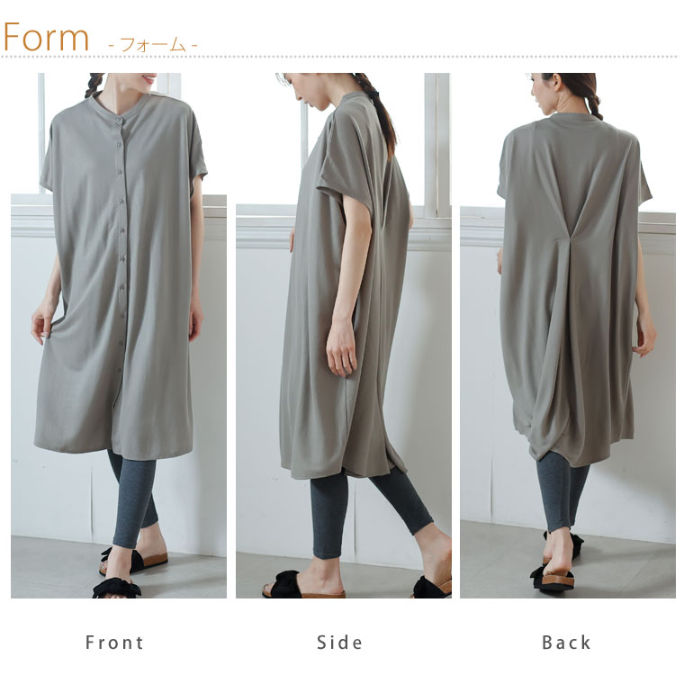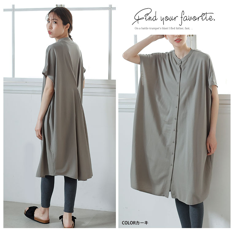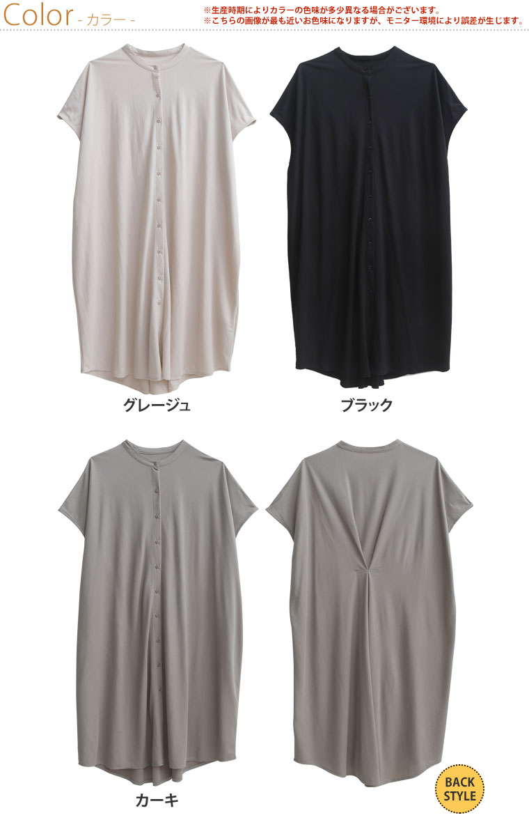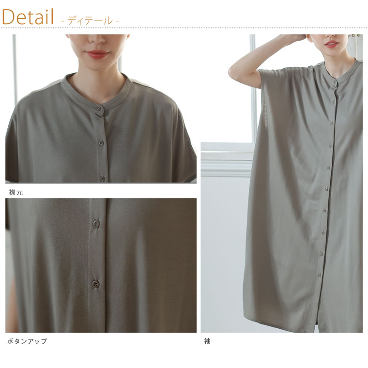 着心地の良いポロシャツ素材のバンドカラーワンピース