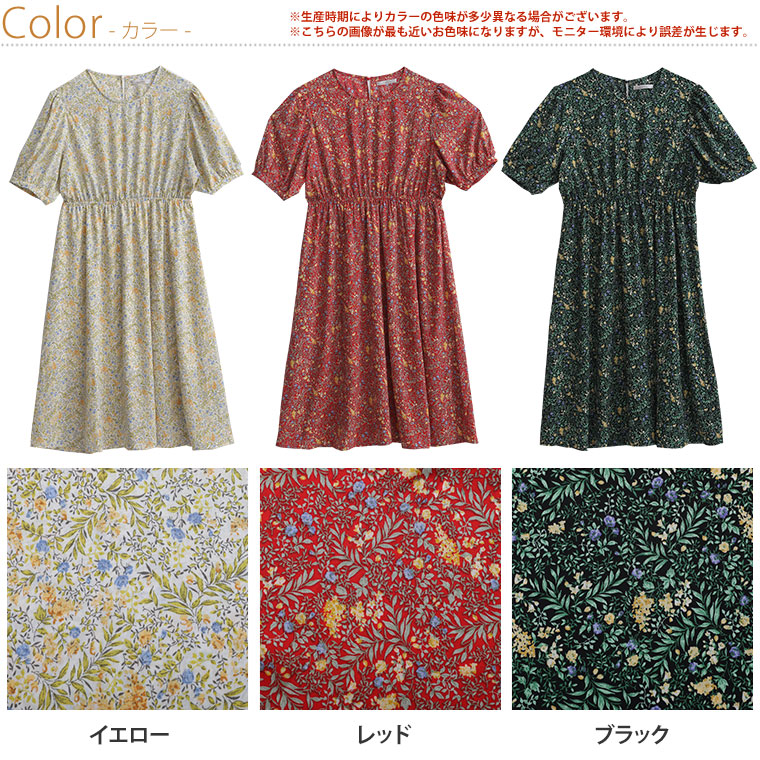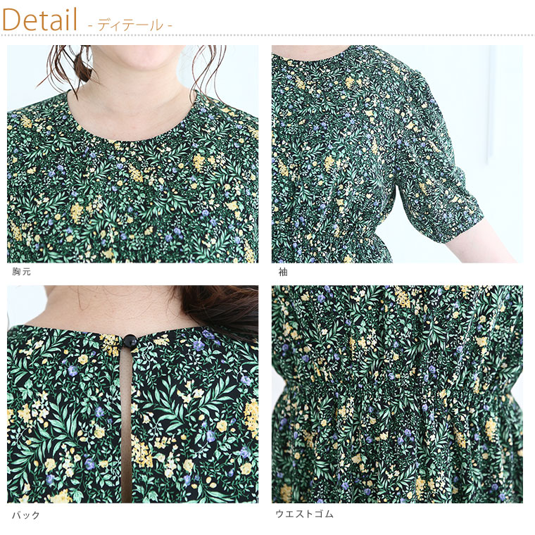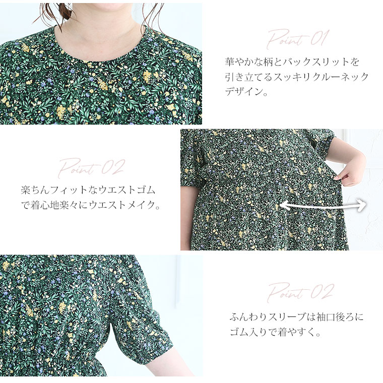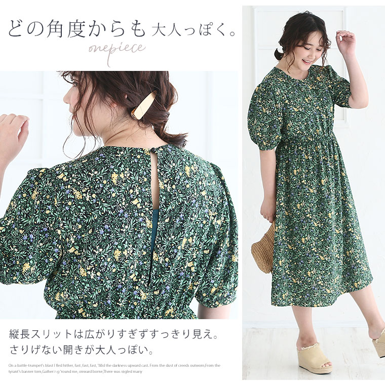 4. 大きいサイズ ジョーゼット ボタニカル柄 プリント バックオープンワンピース