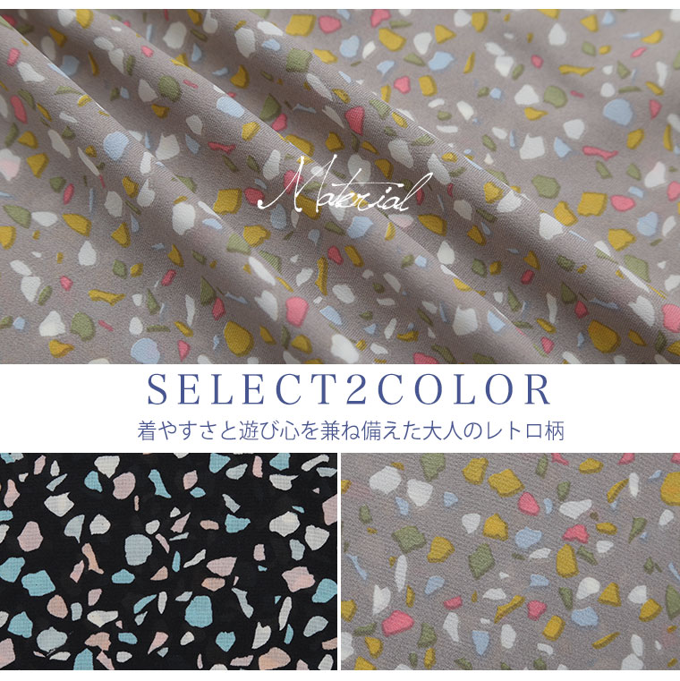 すっきりシルエットで華奢魅せ!幾何学柄ワンピース