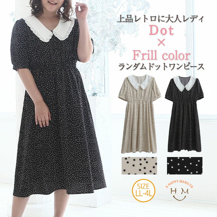 上品レトロなランダムドットに大人の愛されフリル襟
