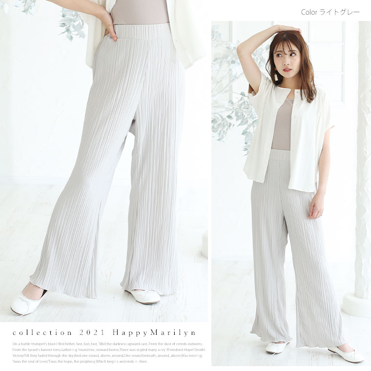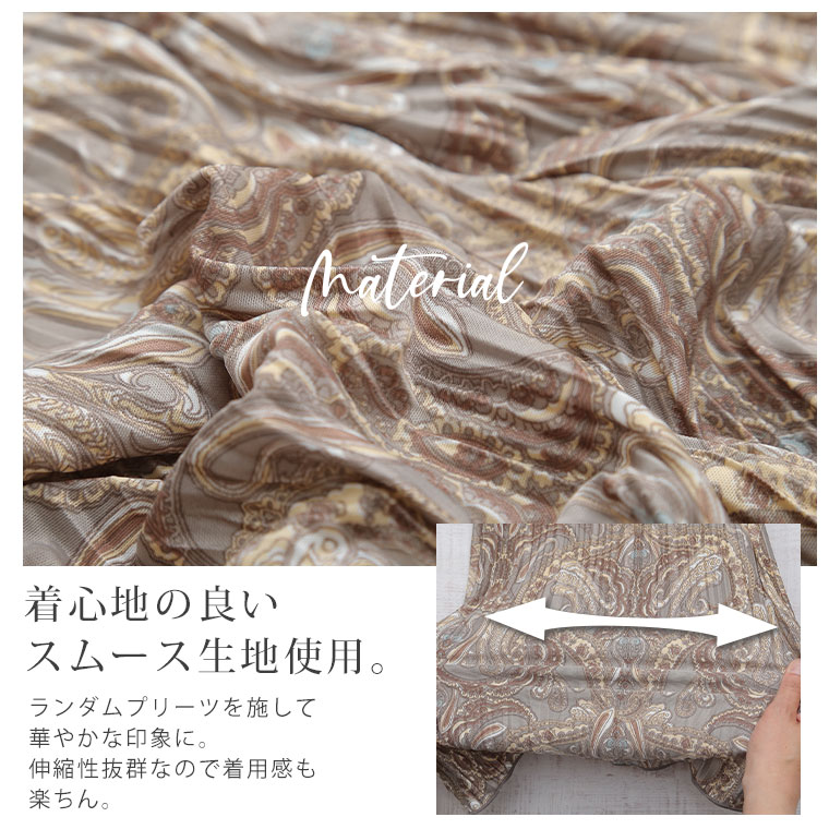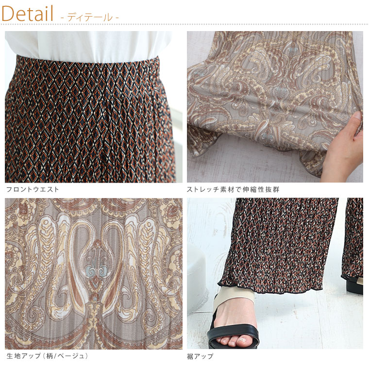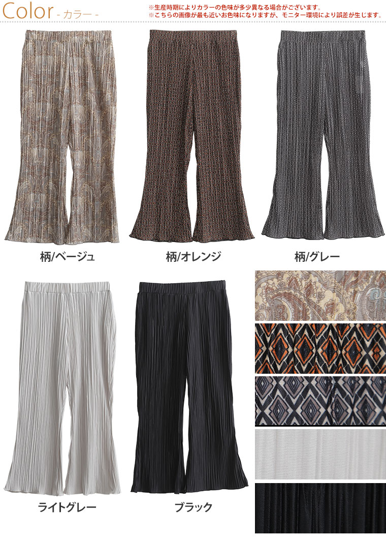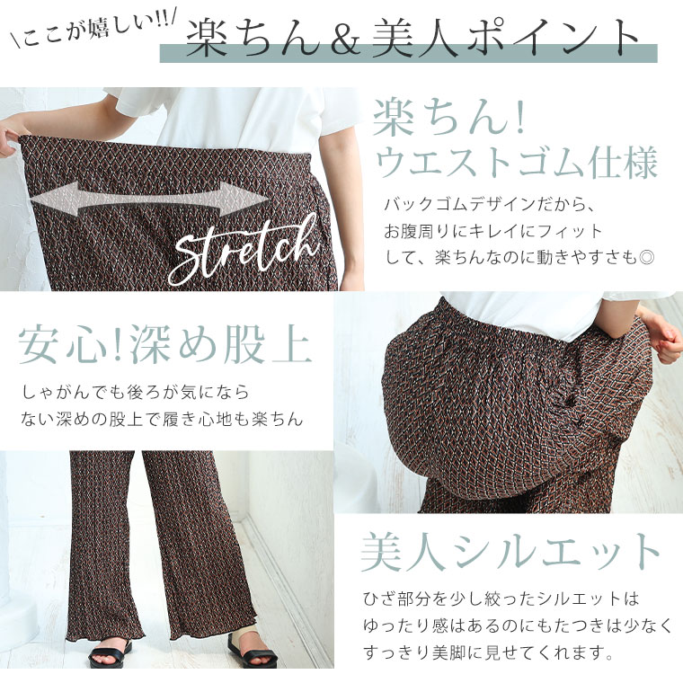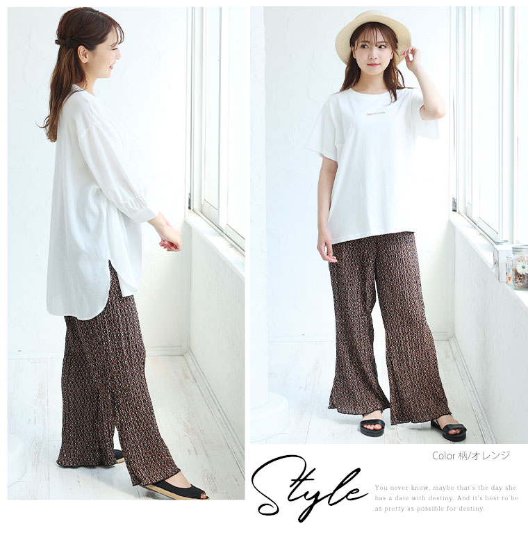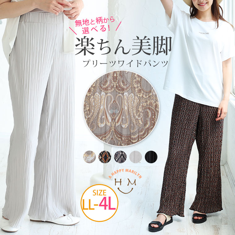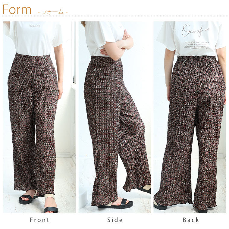 無地と柄から選べる 楽ちんプリーツワイドパンツ