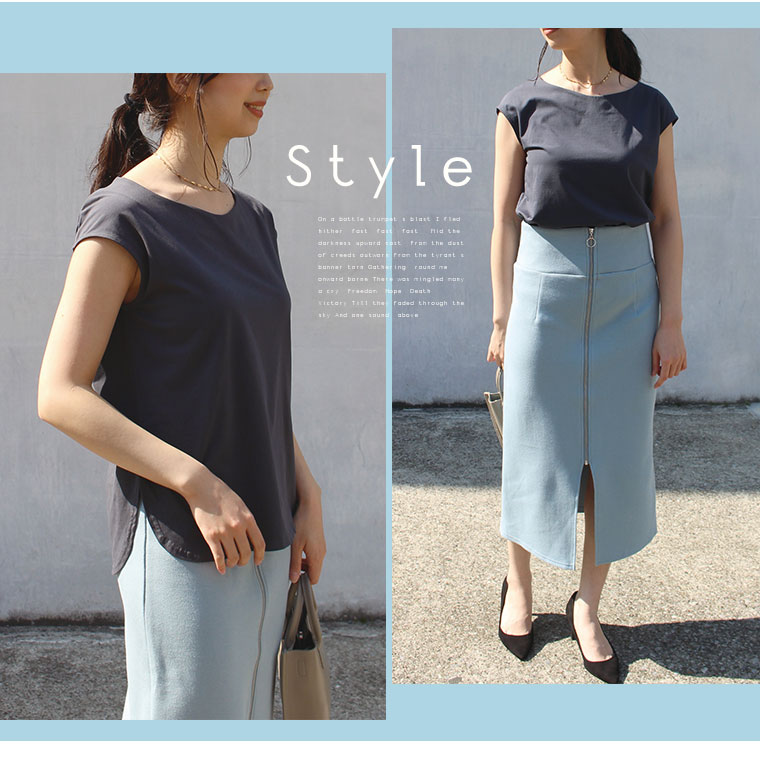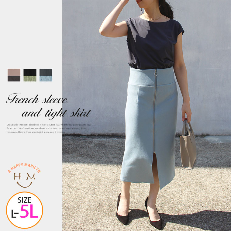 お洒落な配色で着るだけお洒落なフレンチスリーブ&タイトスカート