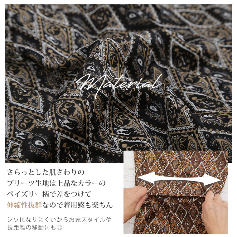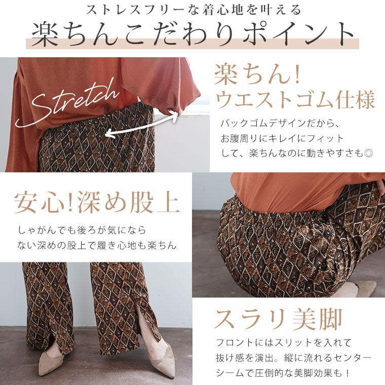 ウエストゴムで楽ちん。さらりと着れて美人シルエット