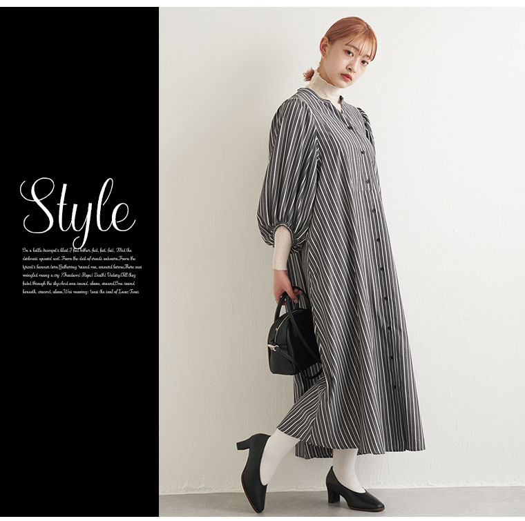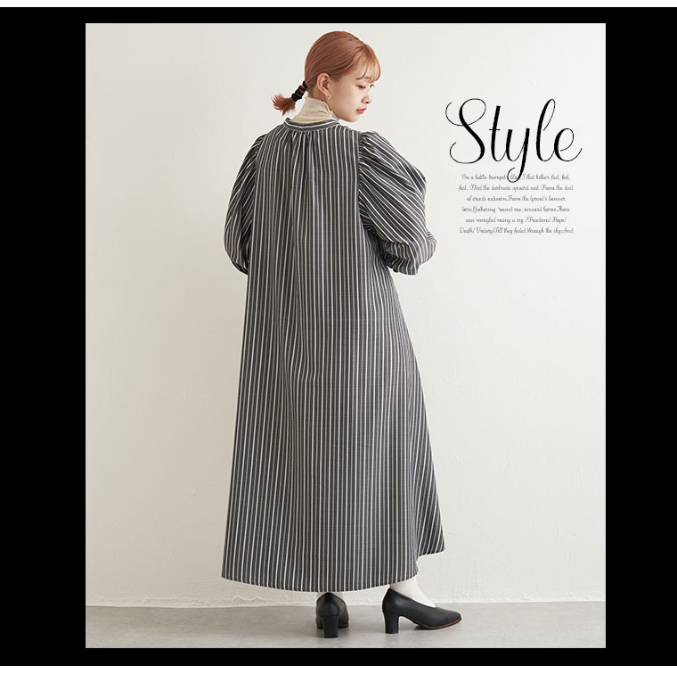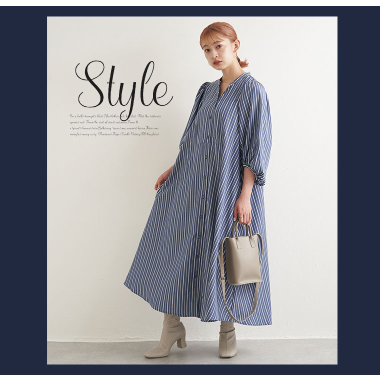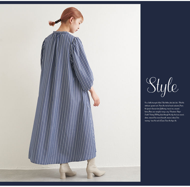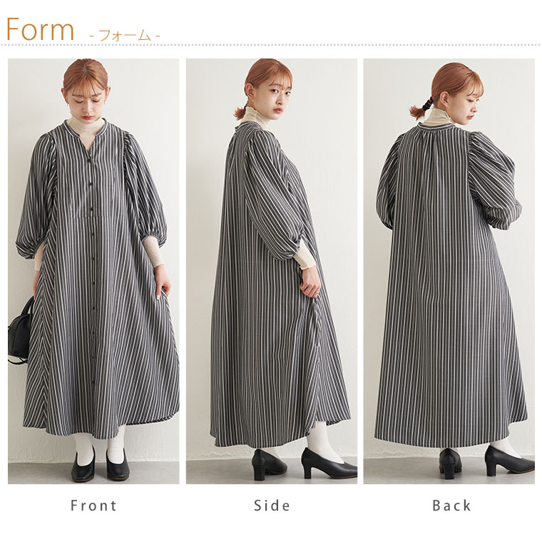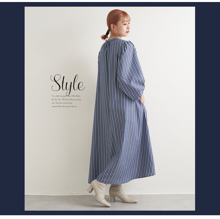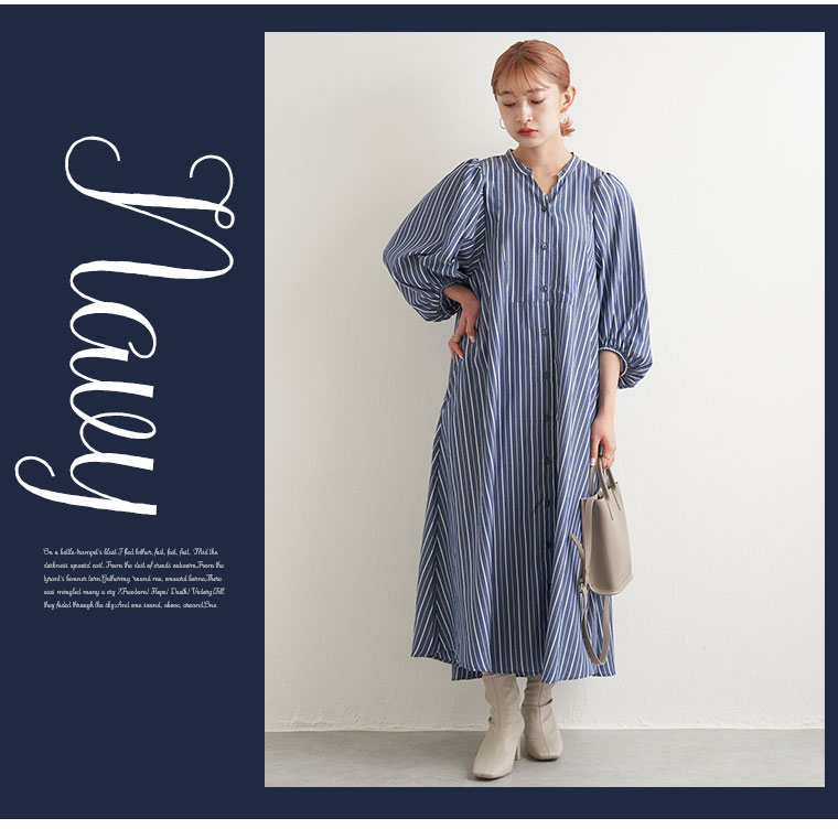 ネイビー、L-LLを購入。 写真通りでシルエットが可愛かった。 150cmなので丈が長いかなと思っていたけど、裾の後ろ側が長いデザインになってて床スレスレだった。ベルトでブラウジングして着ます。