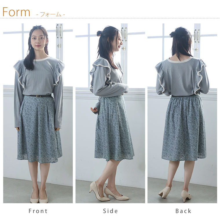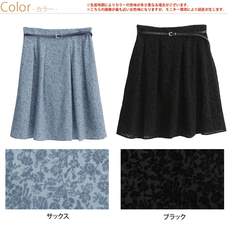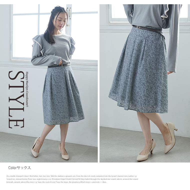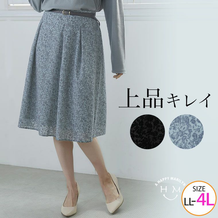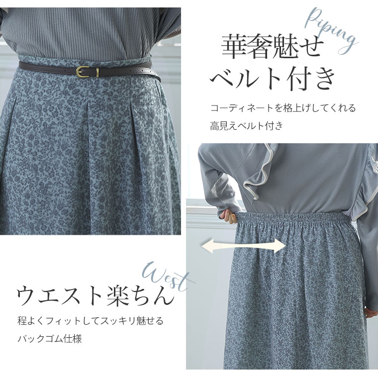 大人のコーディネートにぴったりなベルト付き花柄スカート