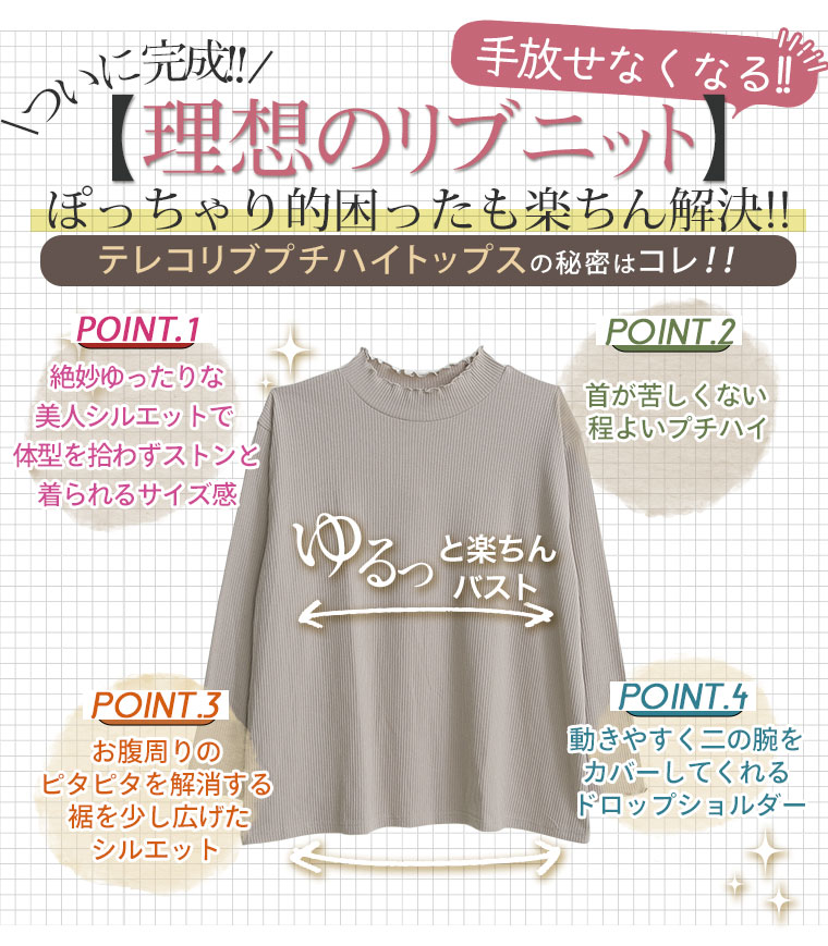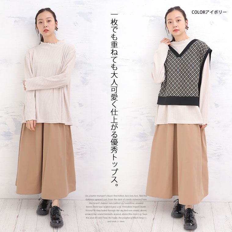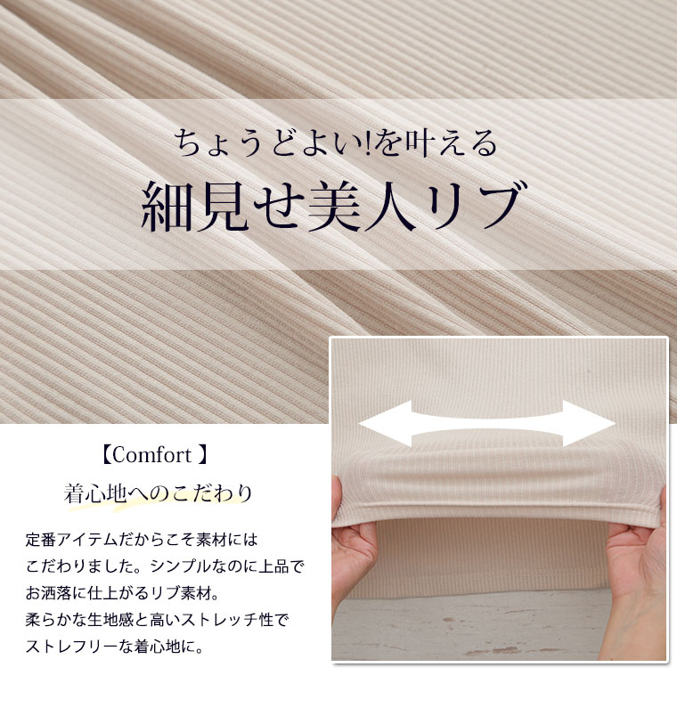 1枚使いはもちろんレイヤードでも可愛い。シンプルに大人可愛く。着まわせるリブトップス