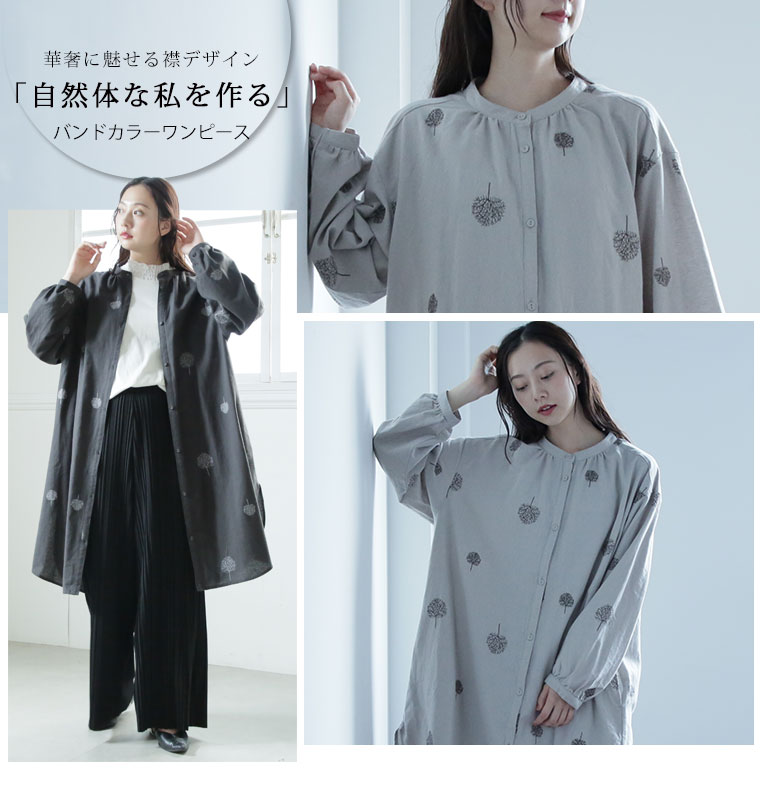 華奢にみせる襟デザイン。使える2wayシャツワンピース