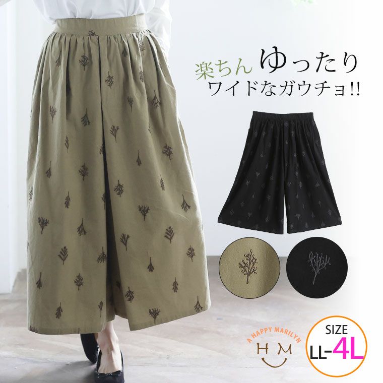 4. 大きいサイズ 綿 ネル タックギャザー スカンツ (ツリー柄) | 大きいサイズの通販ならハッピーマリリン