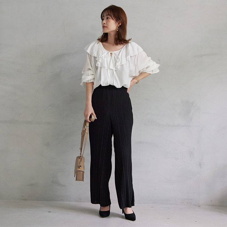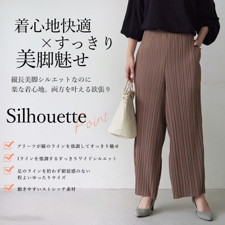 ストレッチで楽ちん程よいワイド感で縦長シルエット