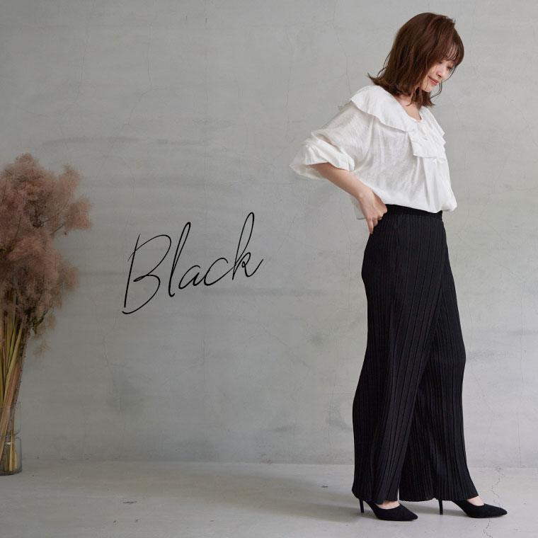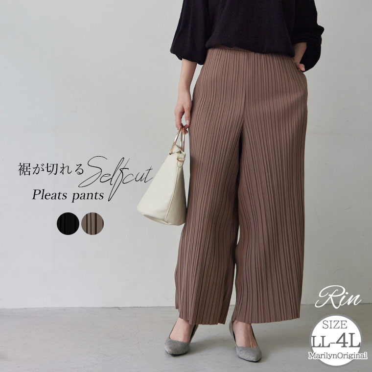 ボトムス ワイドパンツ LL 3L 4L 5L 6L 秋 秋物 秋服 冬 冬物 冬服 リン ぽっちゃり ゆったり キレイめ 上品 高見え プラスサイズ プリーツ加工 【ウェストゴム】 Rin 裾が切れる セルフカット プリーツパンツ