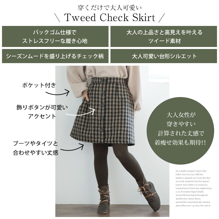 チェックが旬のトレンドでお洒落に穿けるツイードスカート