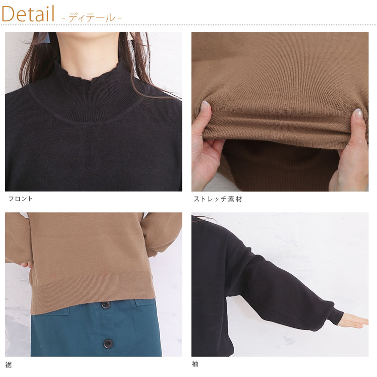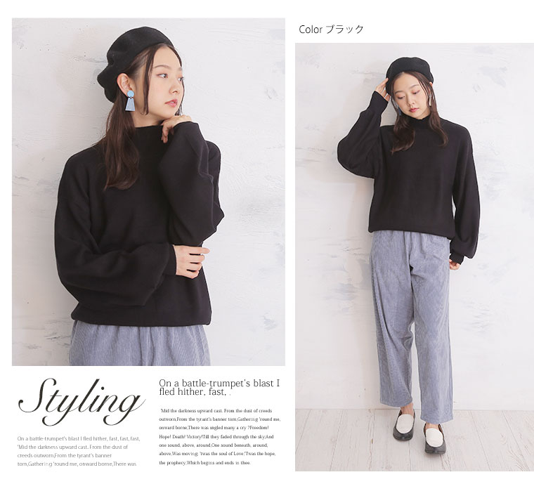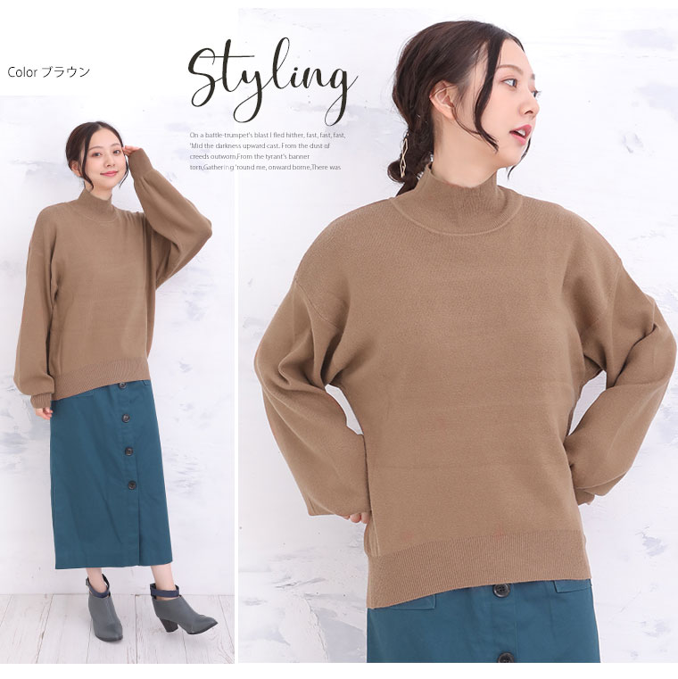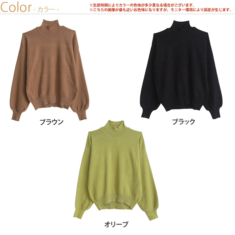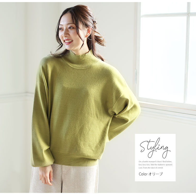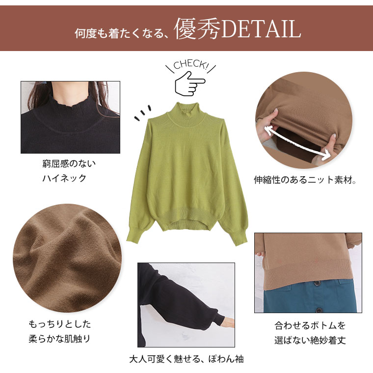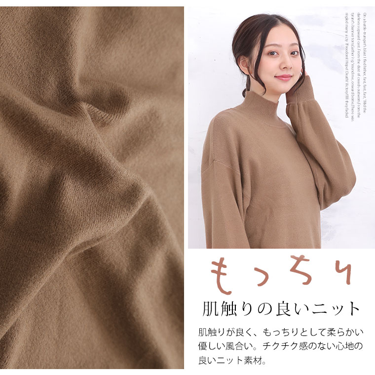 もっちり素材が肌触り良く着れるぽわん袖ニット
