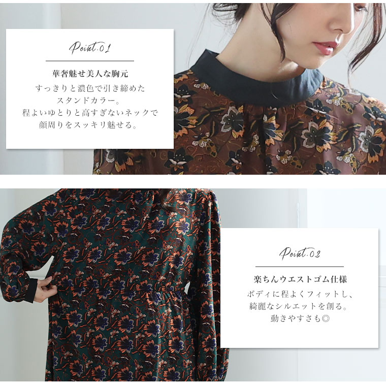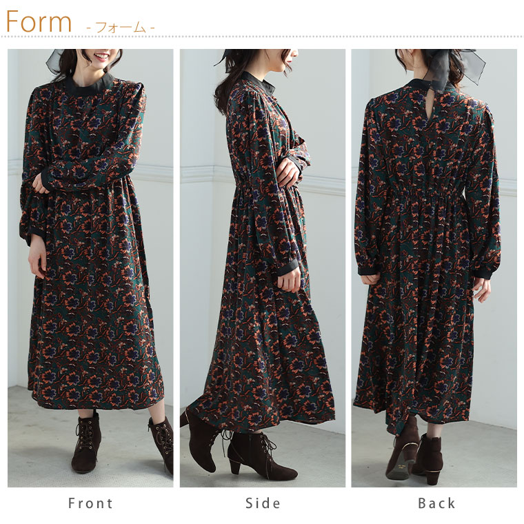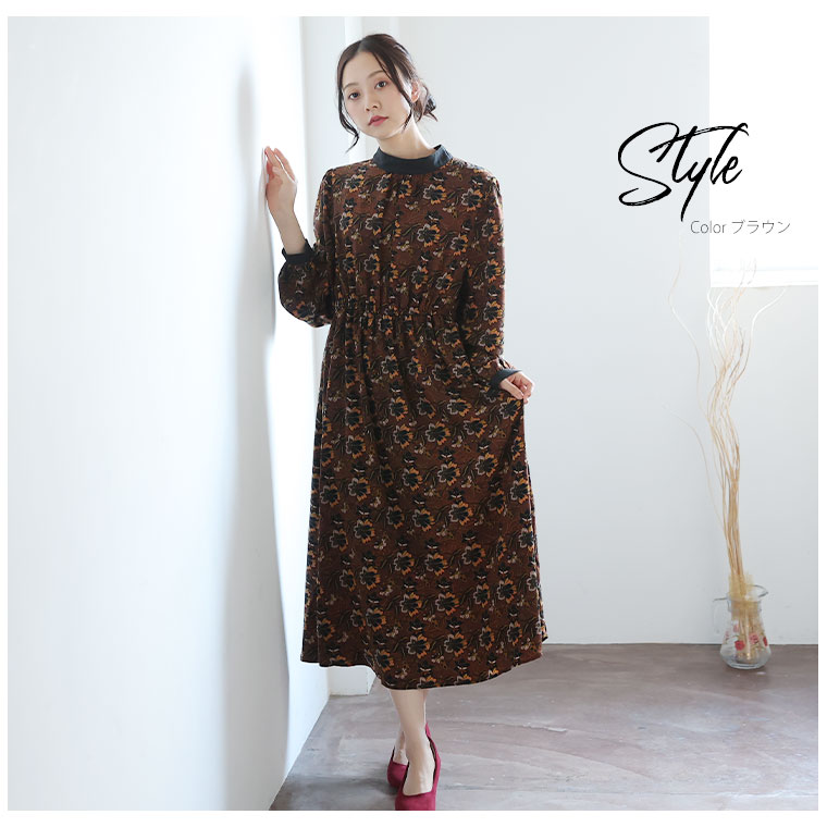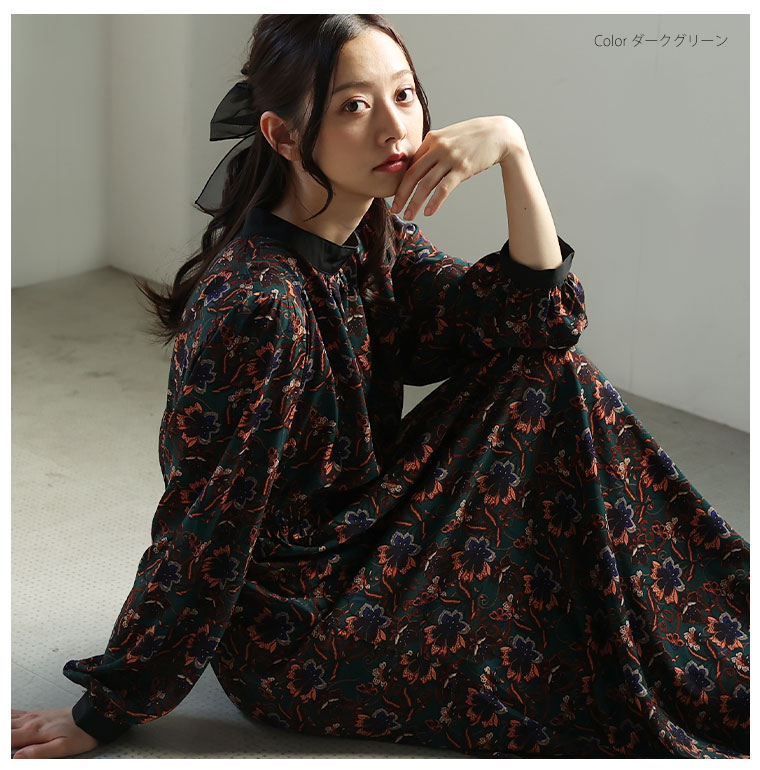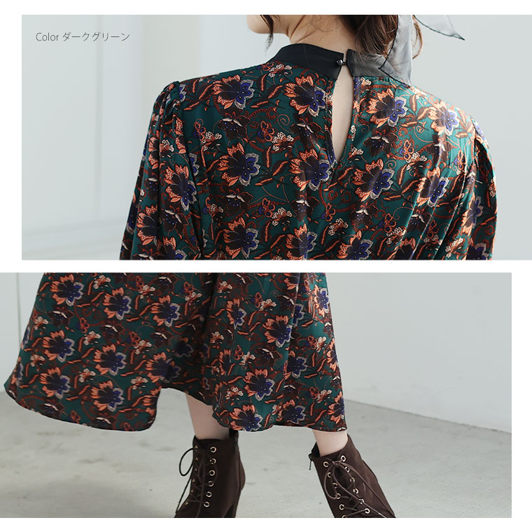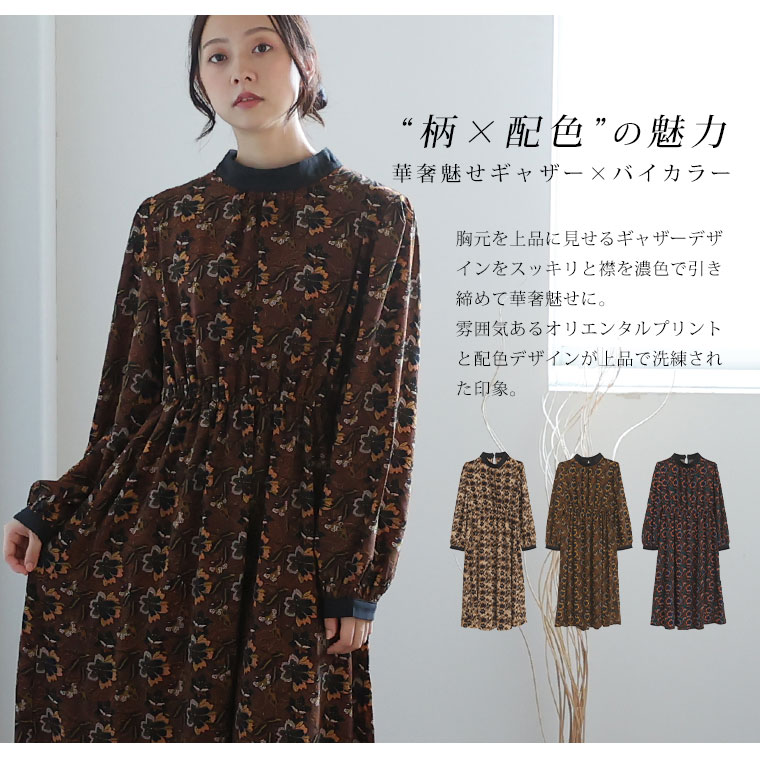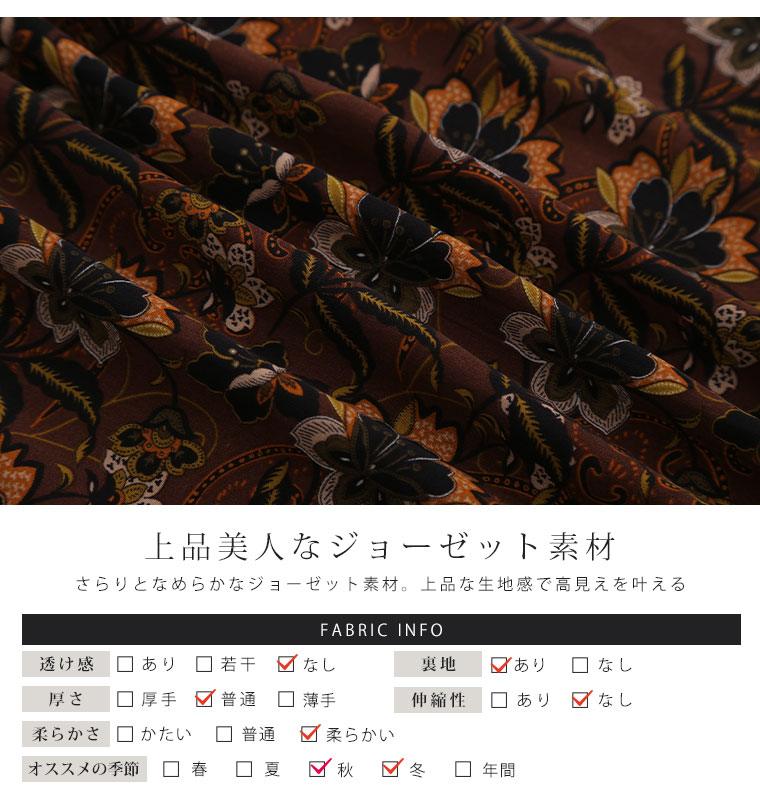 大人上品なショーゼット素材と柄×配色で魅せるワンピ