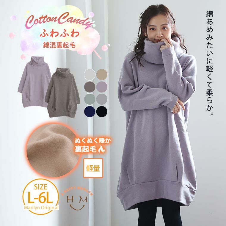 軽い着心地+ふんわり可愛い素材感のオフタートルワンピース
