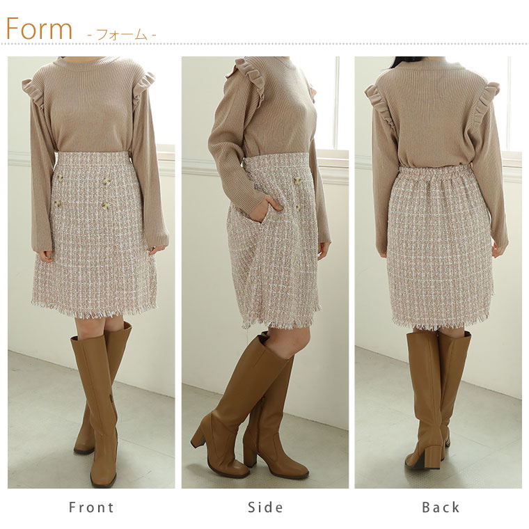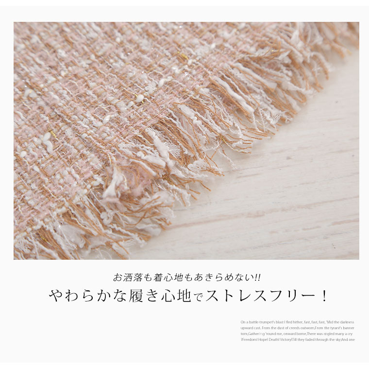 - 表地:ポリエステル83% アクリル7% 綿3% レーヨン3% 毛2% ナイロン(スリット糸使用)2%