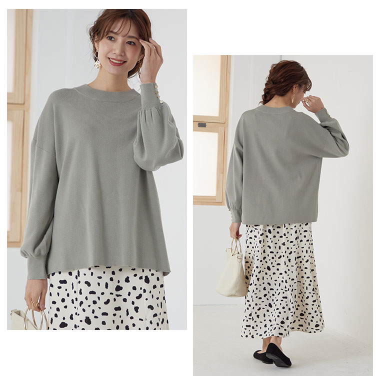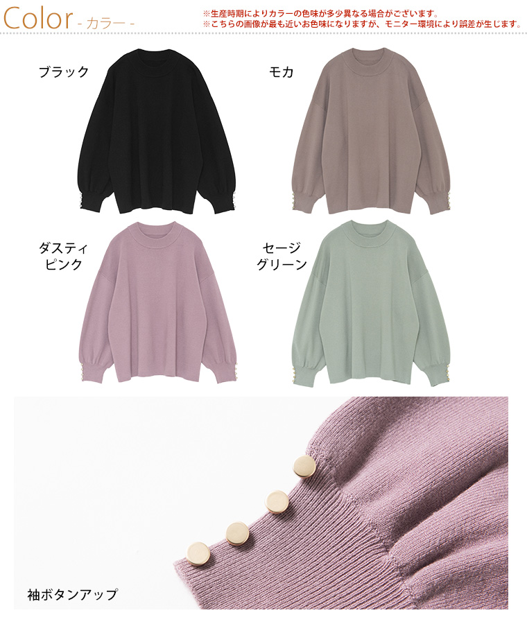もっちり袖ボタンぽわん袖ニット