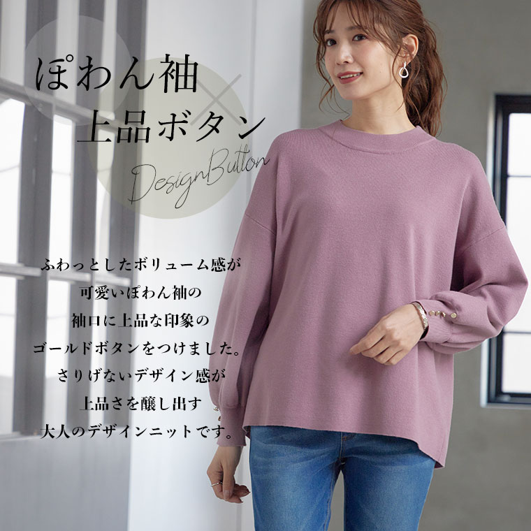 ふわっとボリュームのある袖にゴールドボタンでアクセント上品な大人のニット