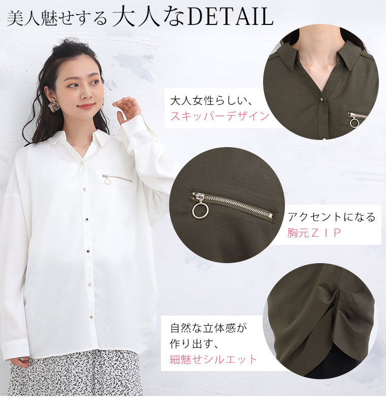 胸元のジップがアクセント