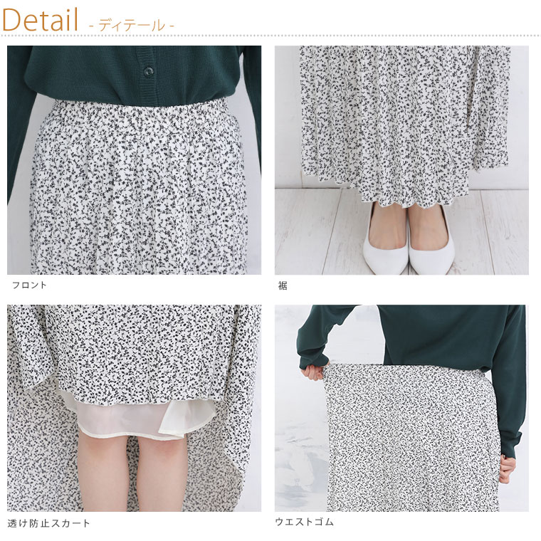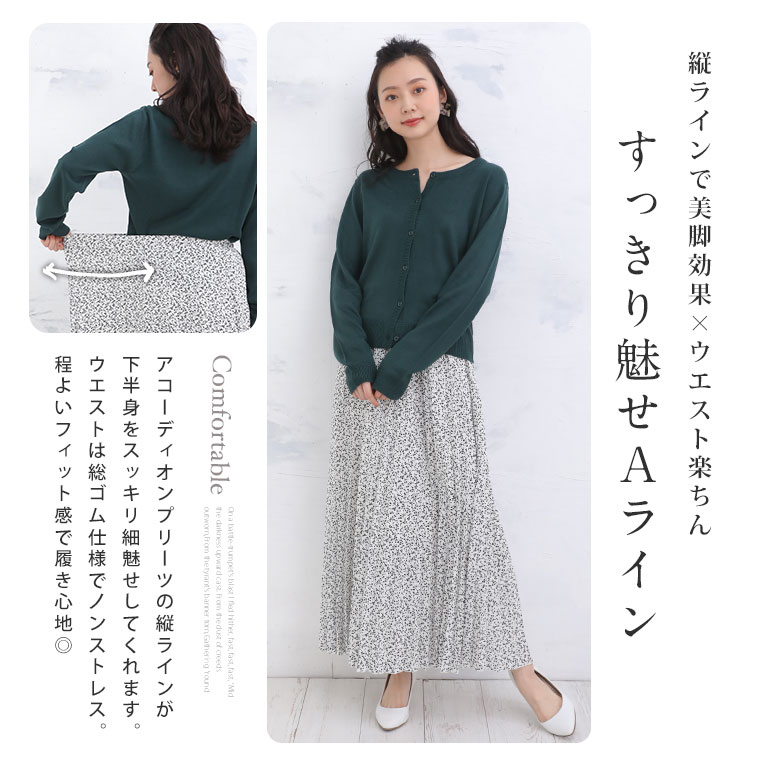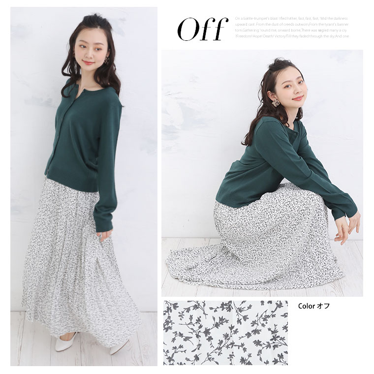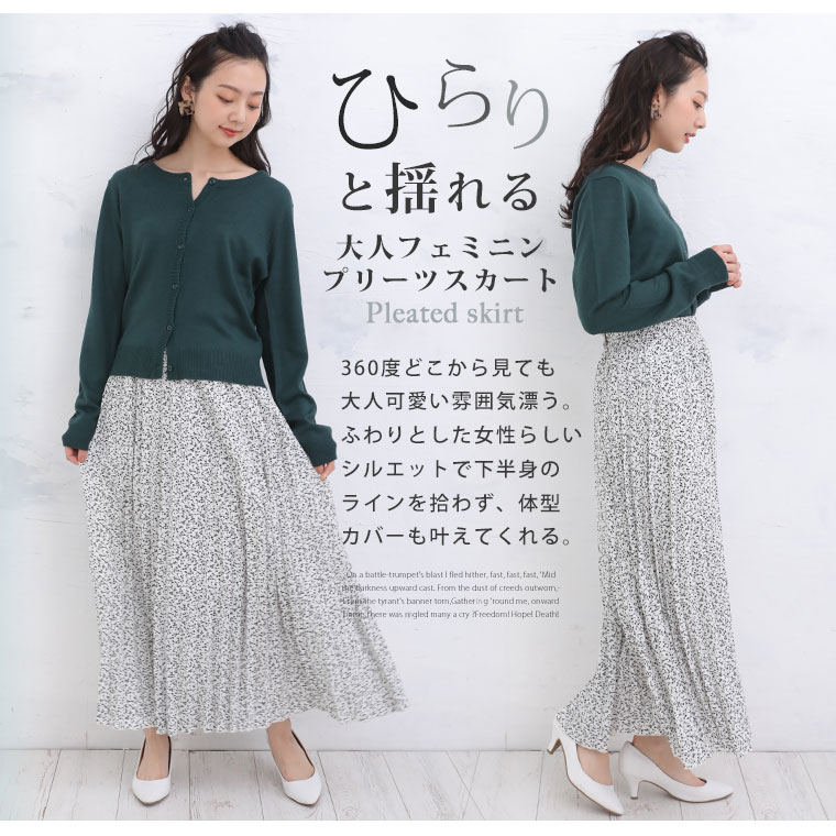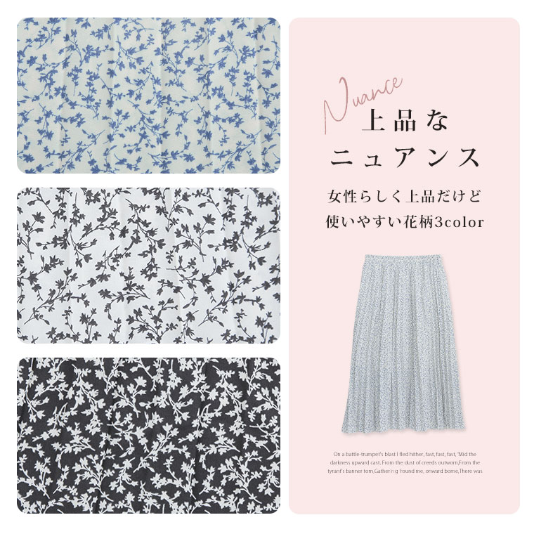 選べる3カラーの花柄でフェミニンにコーデできるプリーツスカート