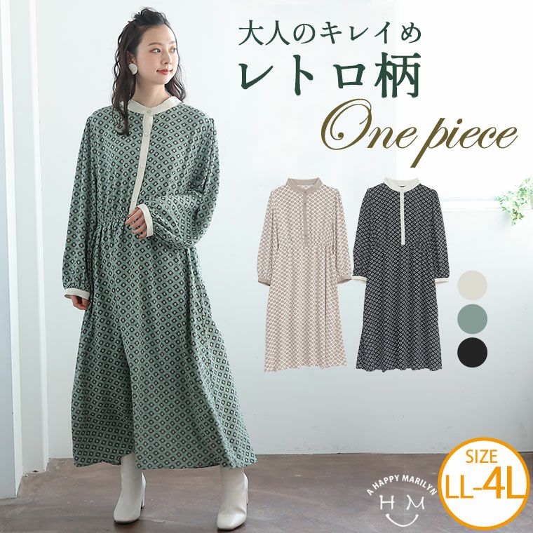 大人のきれいめレトロ柄ワンピース