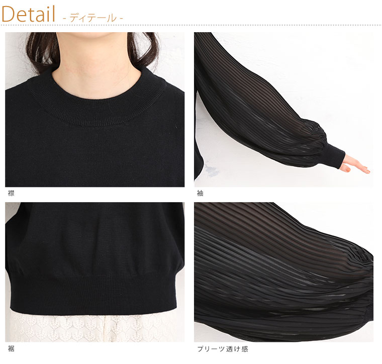大きいサイズ プリーツ シフォンスリーブ ニット プルオーバー