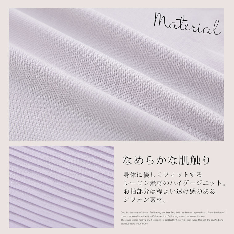 透け感 のある プリーツ 袖が 二の腕 を カバー