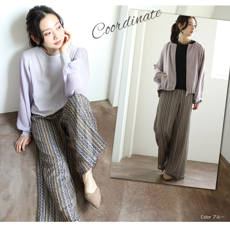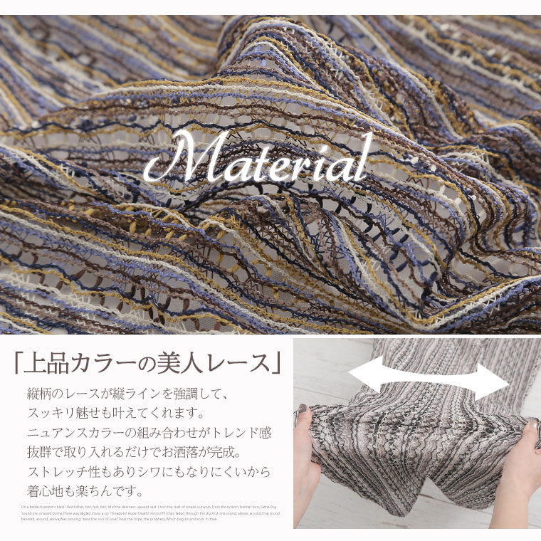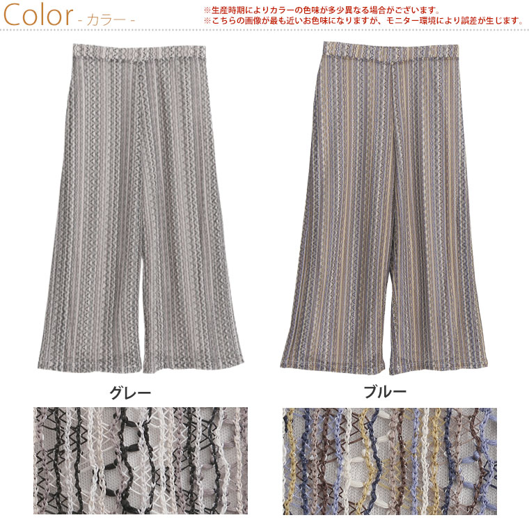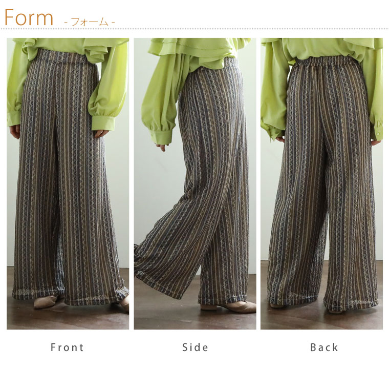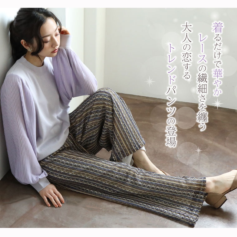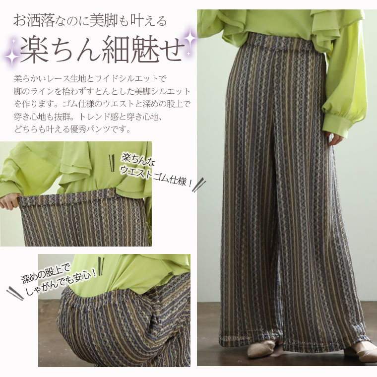 縦柄レースでスッキリ美脚効果! ストレッチで着心地も抜群なワイドパンツ