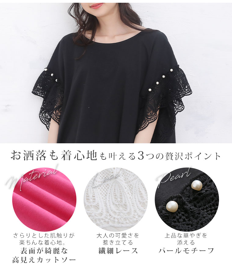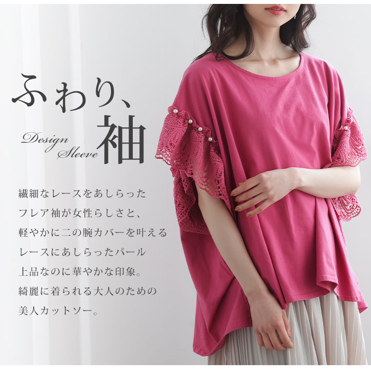 【Rin】パールモチーフ付きレース袖が上品華やか