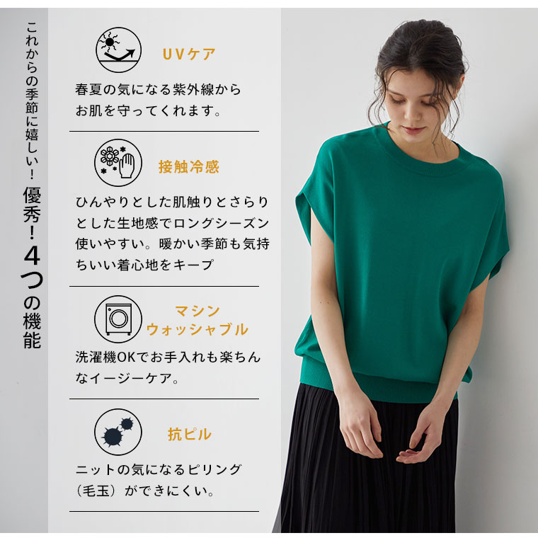 大きいサイズ 【LUMFORLE produced by My:nia】嬉しい機能 UVケア 接触冷感 アイスクリン サマー ドルマンニット 洗える ウォッシャブル 抗ピル 毛玉にならない