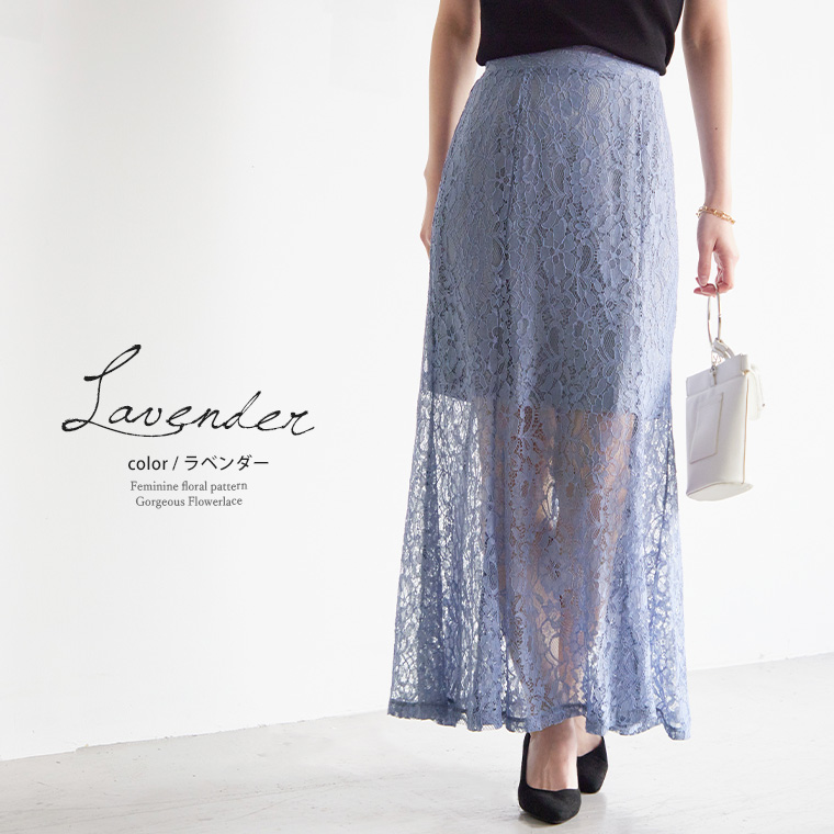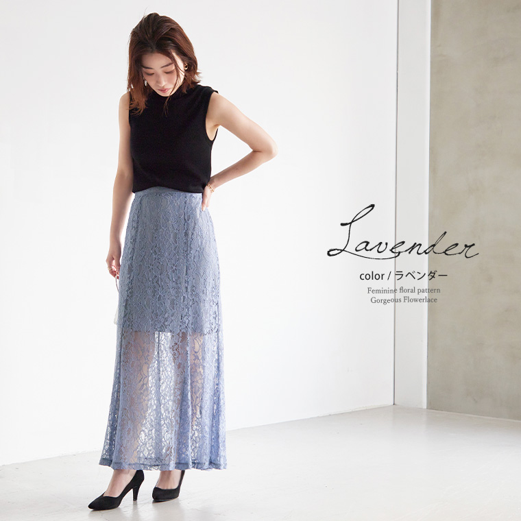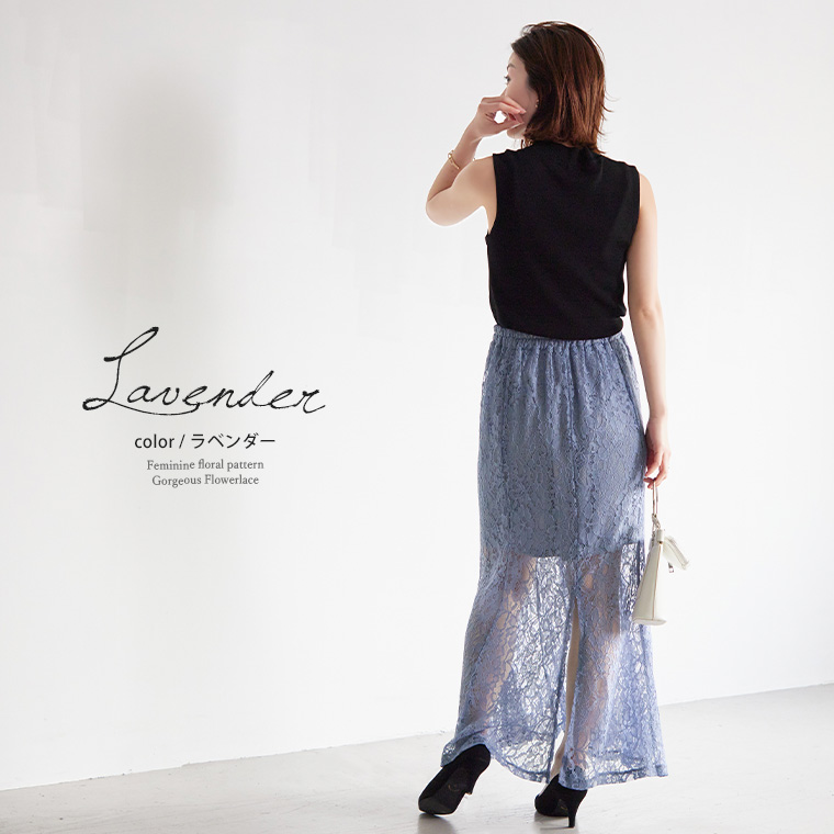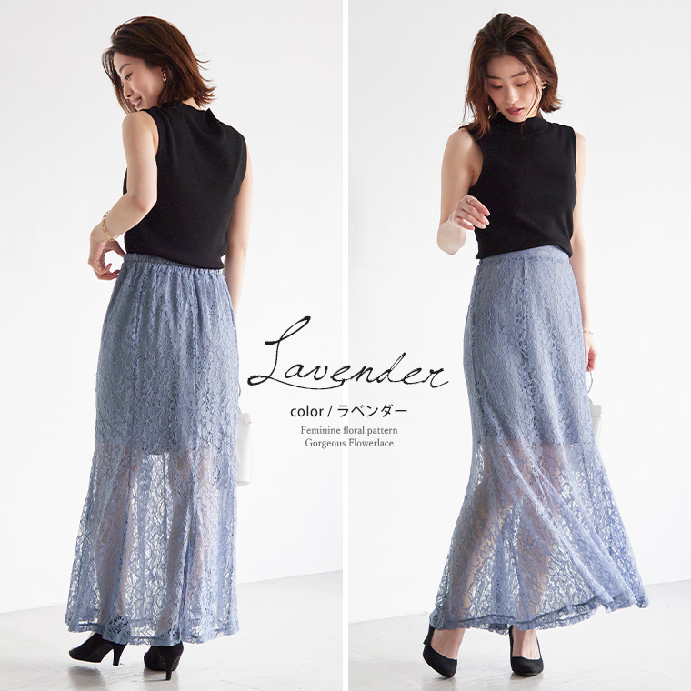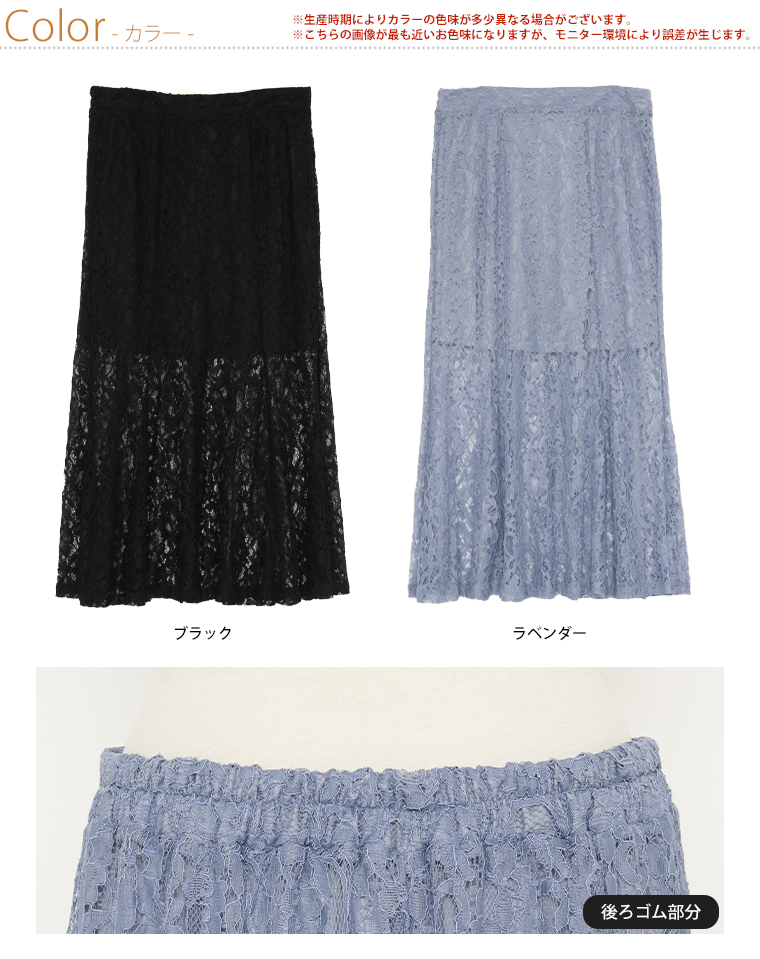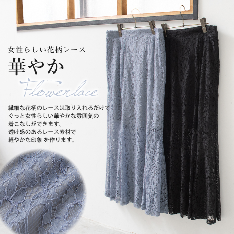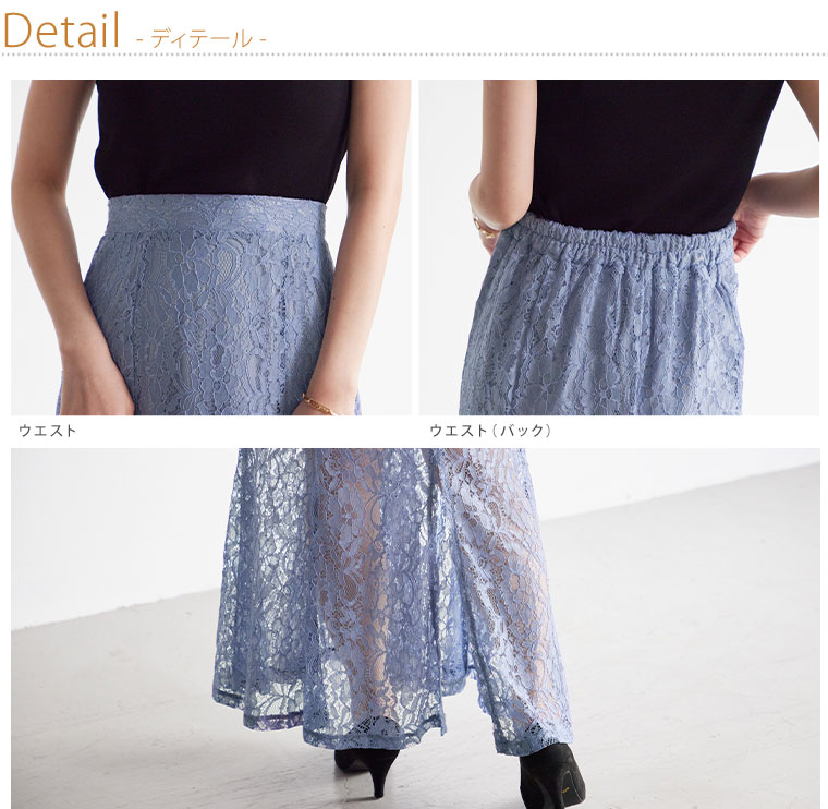 ウエストゴムで楽ちんなのに総レースで女性らしさアップ