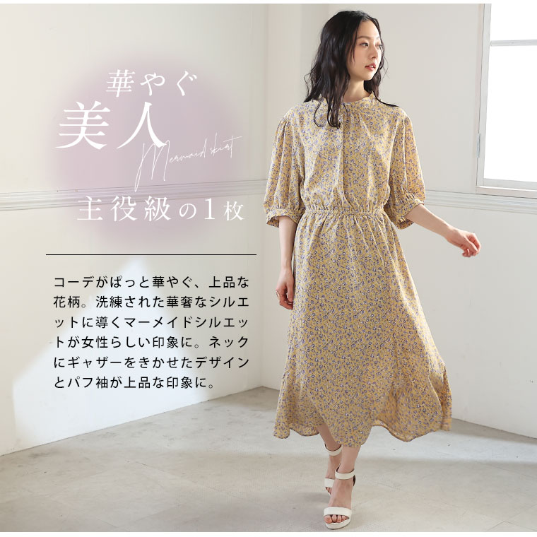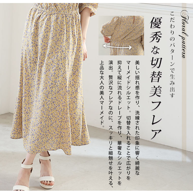 花柄とフレアシルエットで華奢魅せ美人な一枚