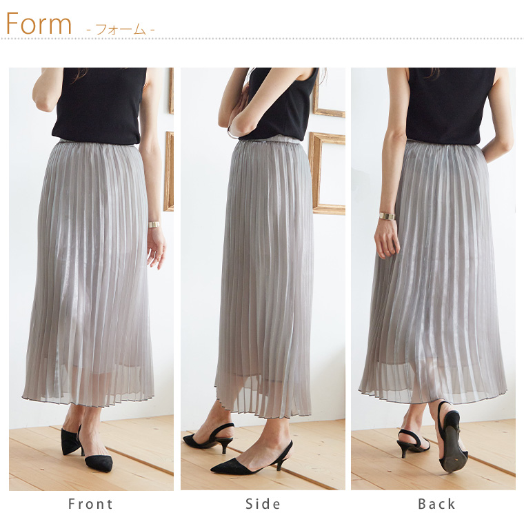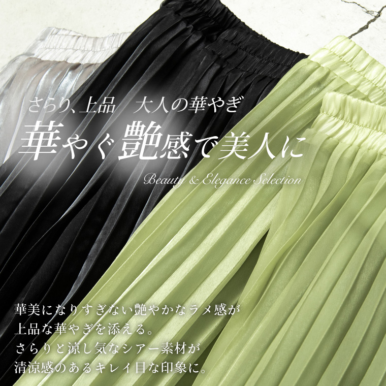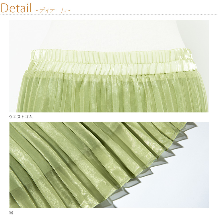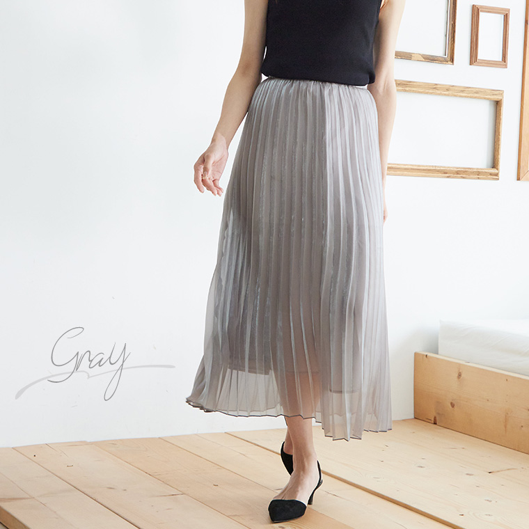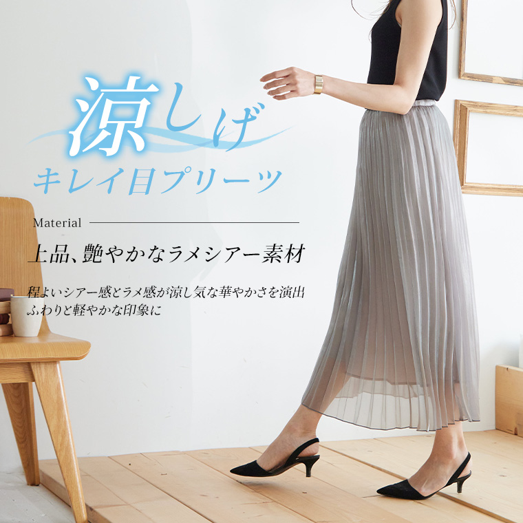 4. 大きいサイズ Rin ラメ シアー ウエストゴム アコーディオンプリーツ スカート