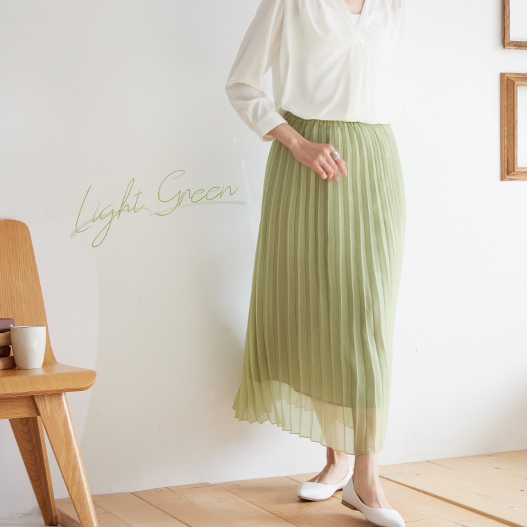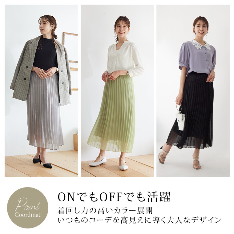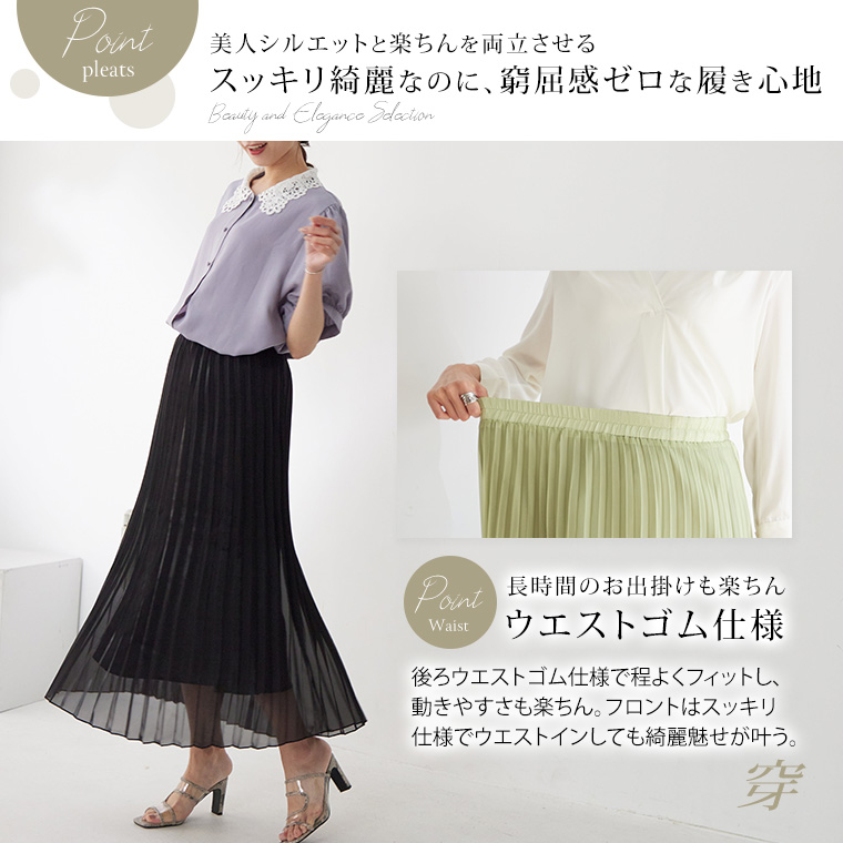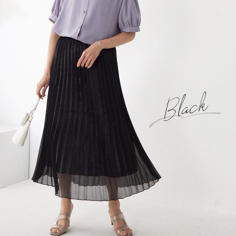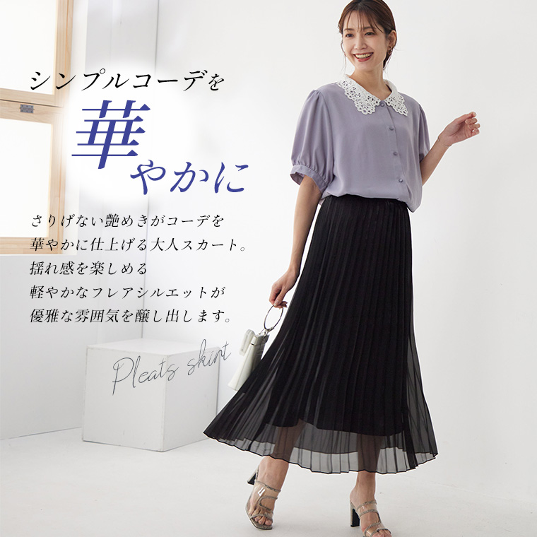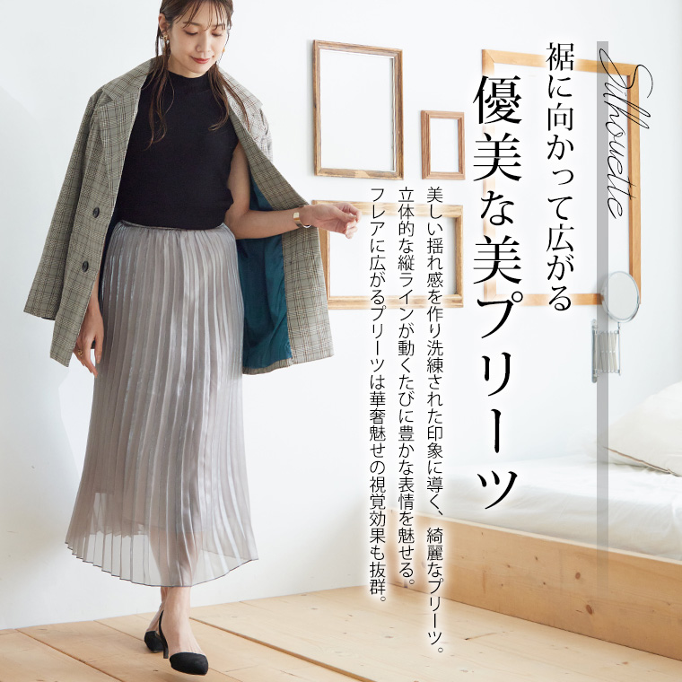 4. 大きいサイズ Rin ラメ シアー ウエストゴム アコーディオンプリーツ スカート