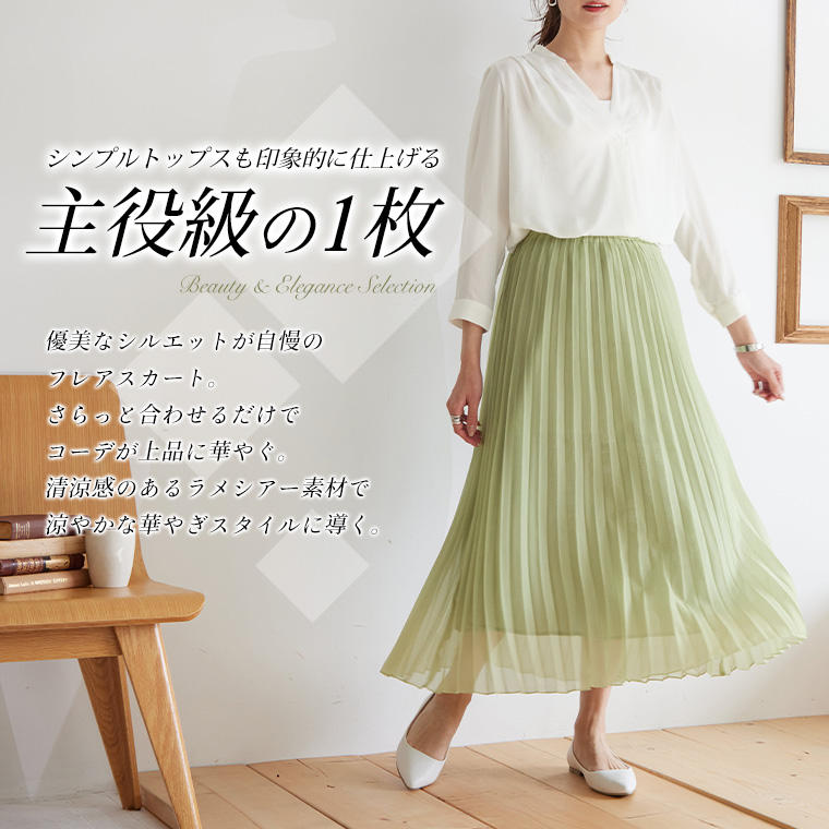 ボトムス ロングスカート LL 3L 4L 夏 夏物 夏服 夏用 ぽっちゃり ゆったり リン 上品 華やか 高見え エレガント Rin ラメ シアー ウエストゴム アコーディオンプリーツ スカート