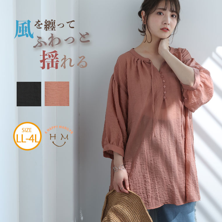 ブラウス LL 3L 4L 夏 夏物 夏服 夏用 ぽっちゃり ゆったり かわいい おしゃれ カジュアル ナチュラル プラスサイズ きれいめ 上品 ガーリー チュニック丈 きれいめ 上品 七分袖 カフタン チュニック