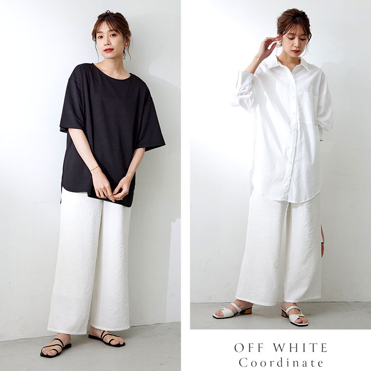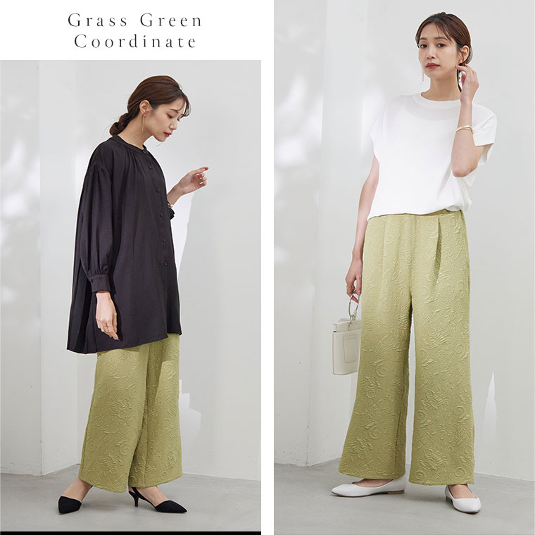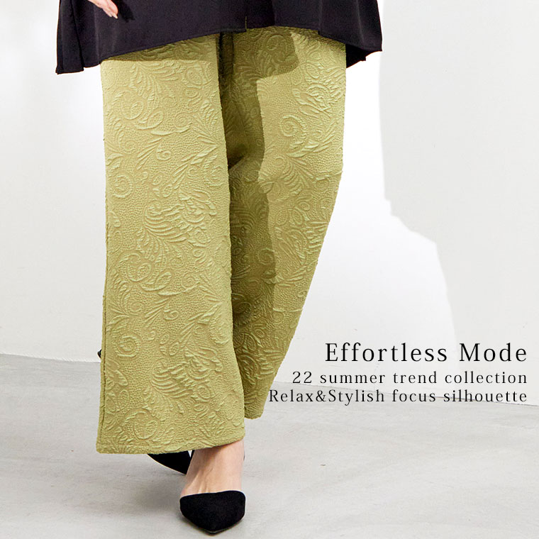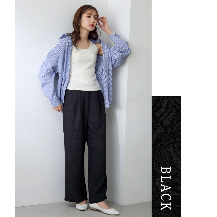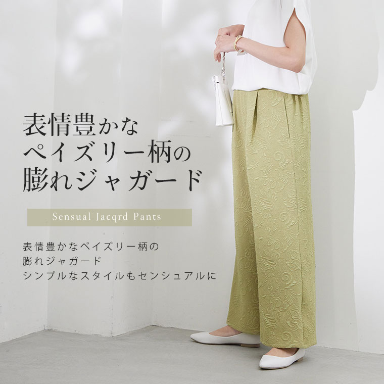 立体感のあるペイズリー柄ですらっと見せのストレートデザイン