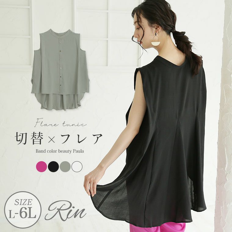 6. 大きいサイズ Rin 後ろ切替 バンドカラー 美人 ポーラ チュニック | 大きいサイズの通販ならハッピーマリリン
