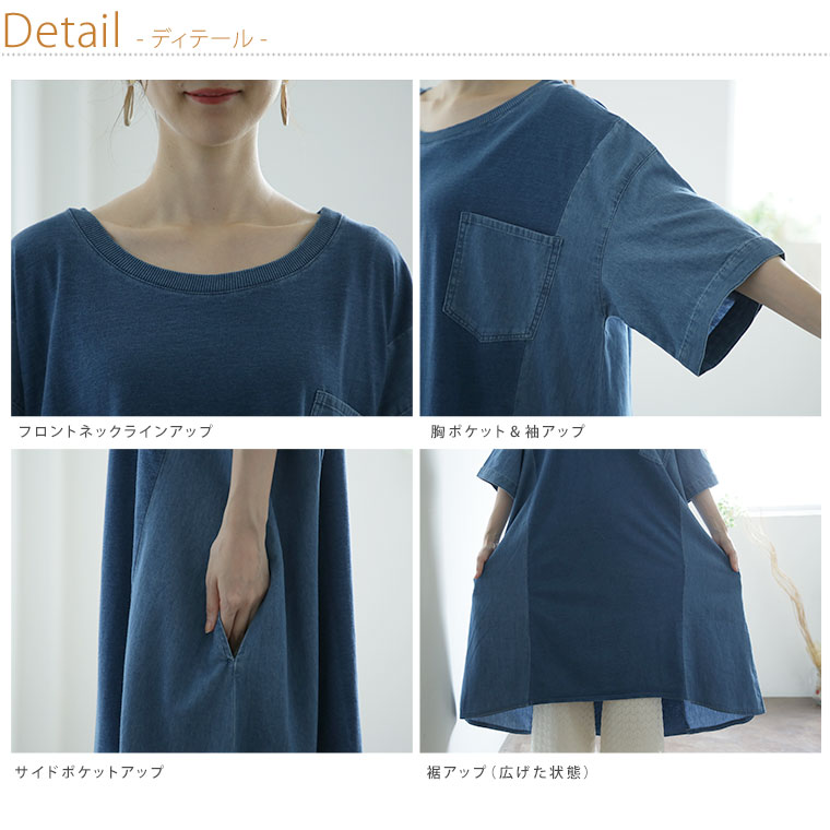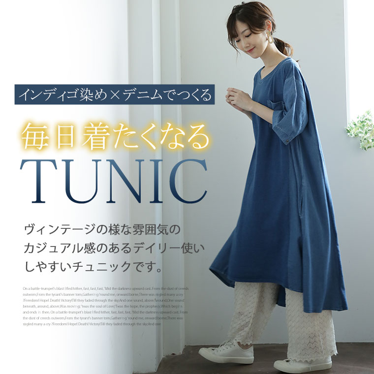 ヴィンテージの様な雰囲気のカジュアル感のあるデニムチュニック