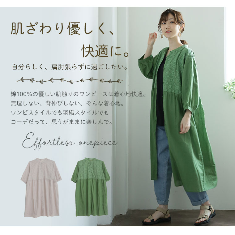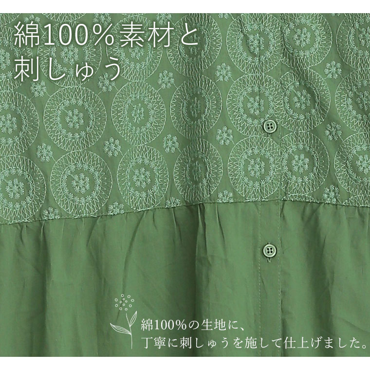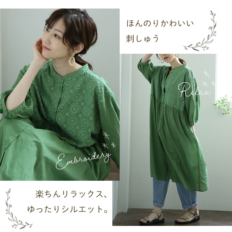 ナチュラルな印象の刺しゅうが可愛い、大人のリラックスコーデに。