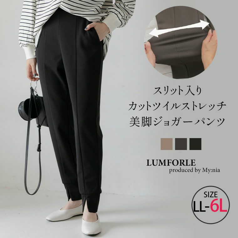 大きいサイズ 【LUMFORLE produced by My:nia】スリット入り ストレッチ 美脚 ジョガーパンツ【ストレッチ】 | 大きいサイズの通販ならハッピーマリリン